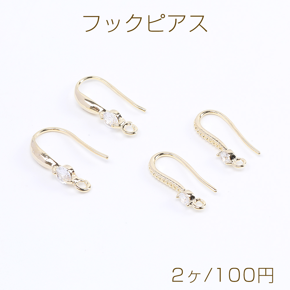 フックピアス U字型 ジルコニア付き ゴールド(2ヶ)