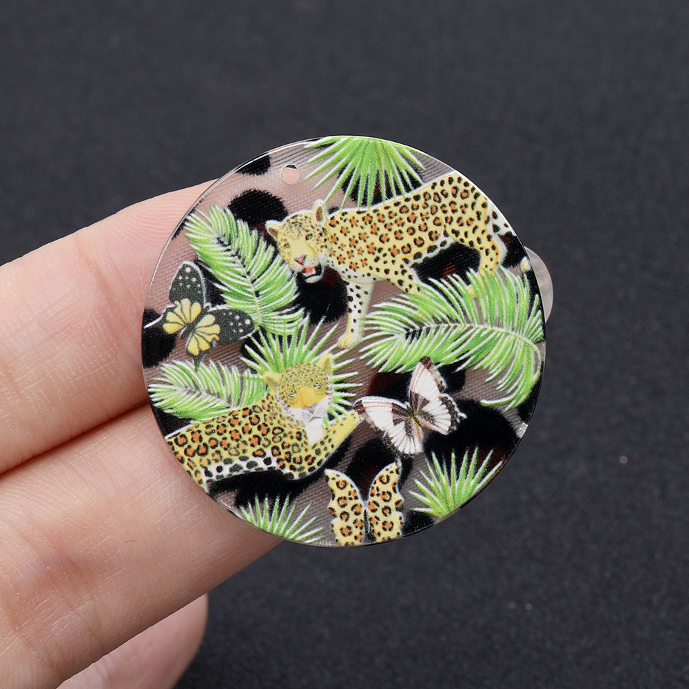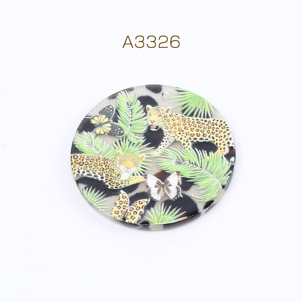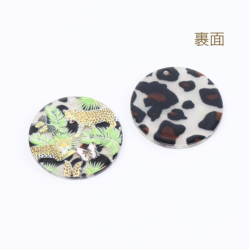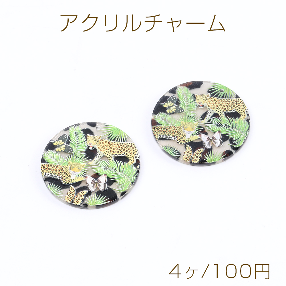 高品質アクリルチャーム ラウンド 1穴 35mm ヒョウ柄(4ヶ)
