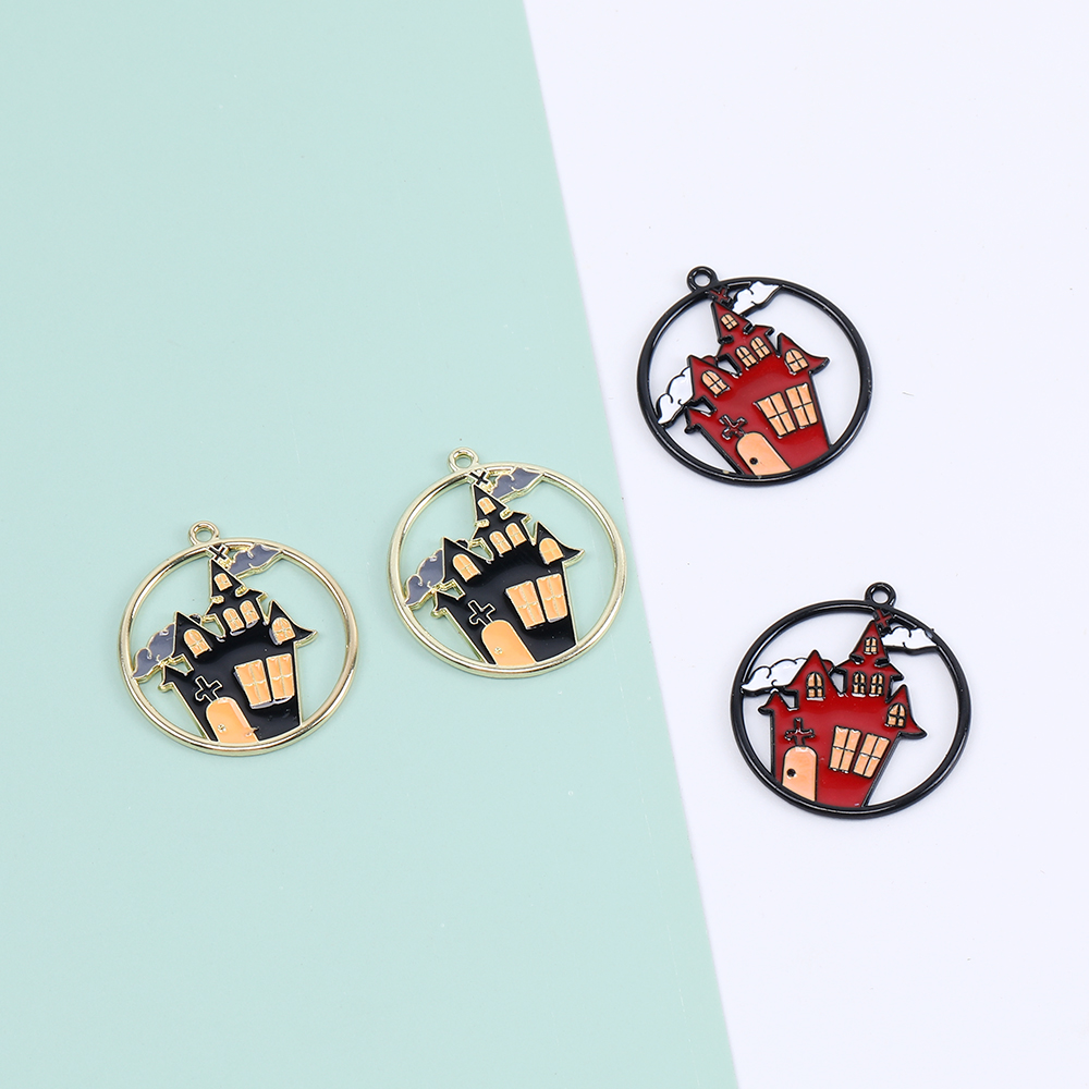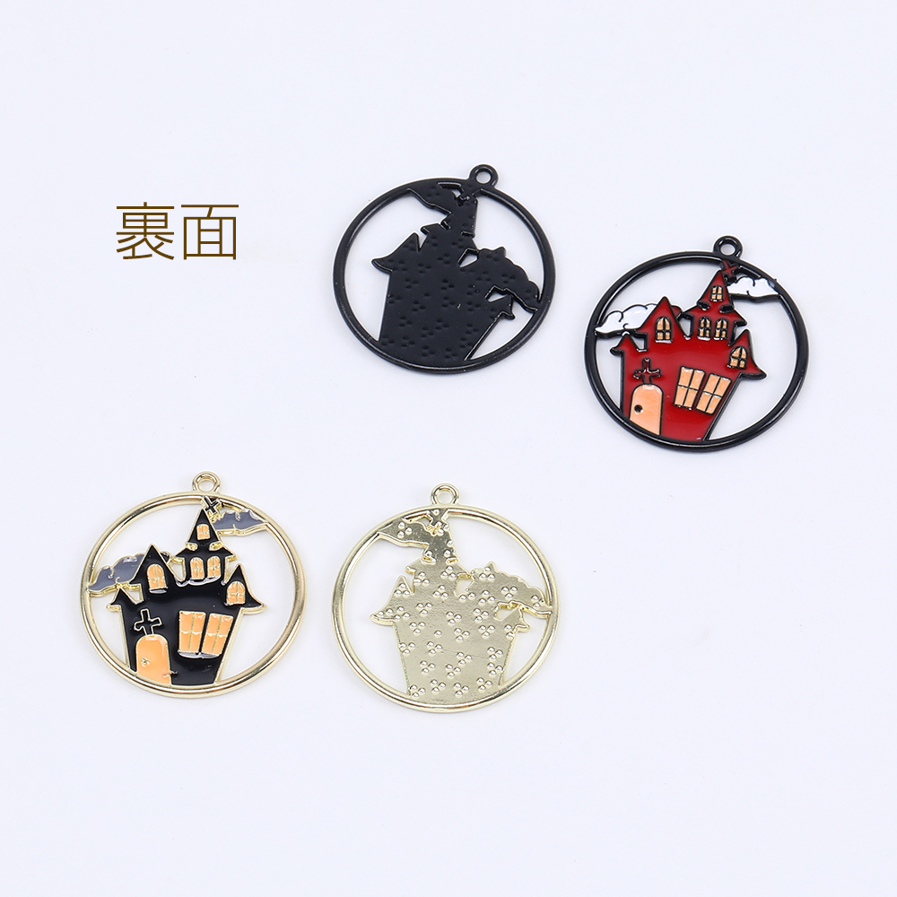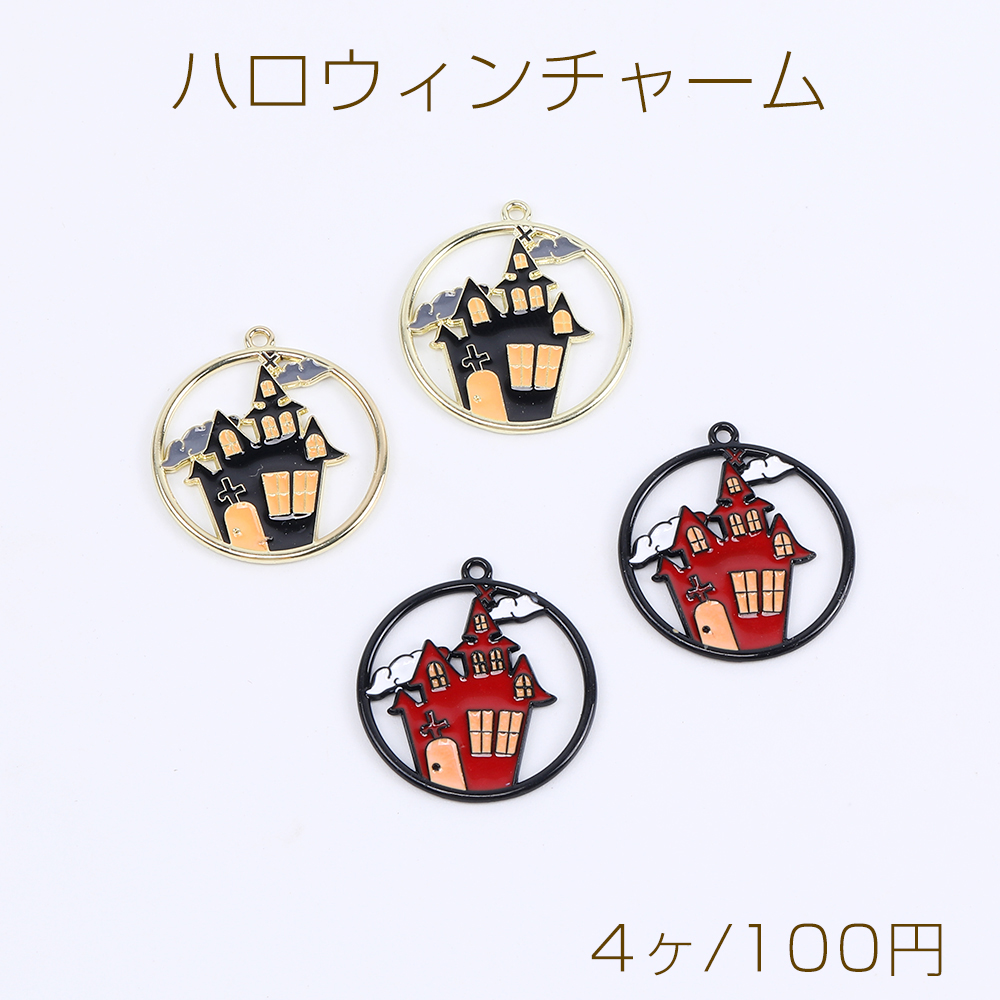 高品質ハロウィンチャーム エポチャーム お城チャーム カン付き 22×24mm(4ヶ)