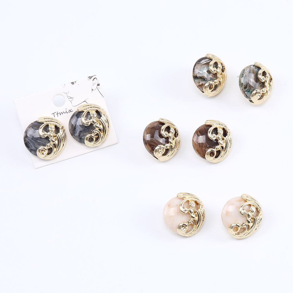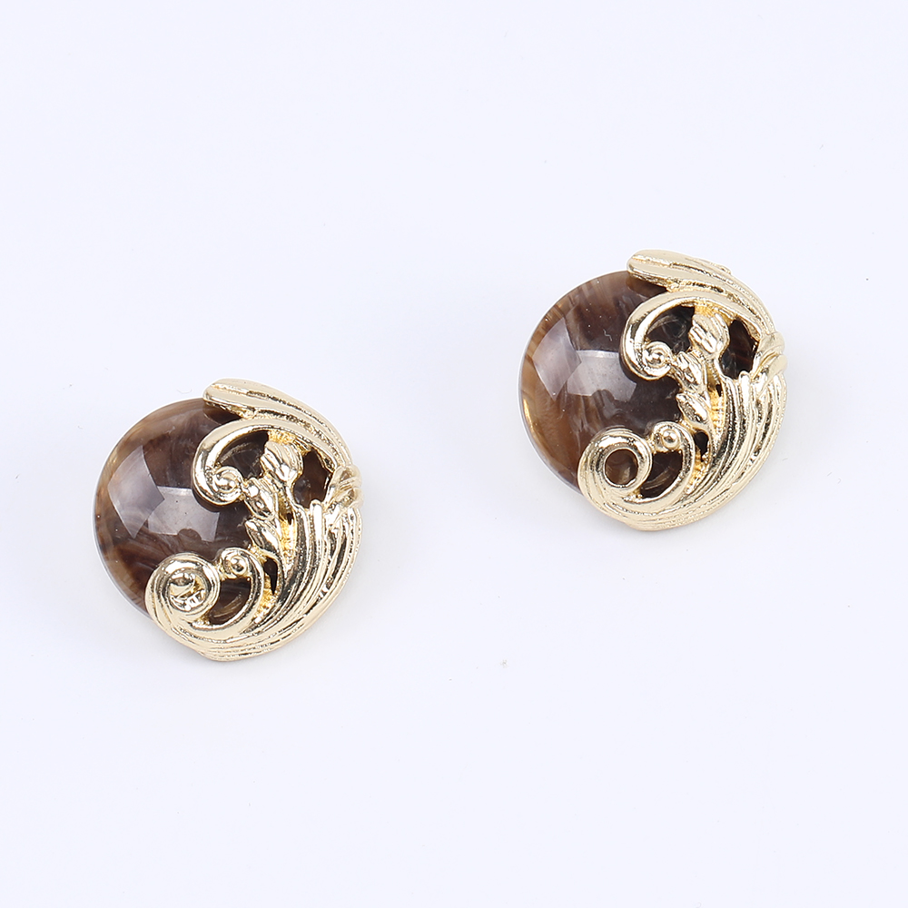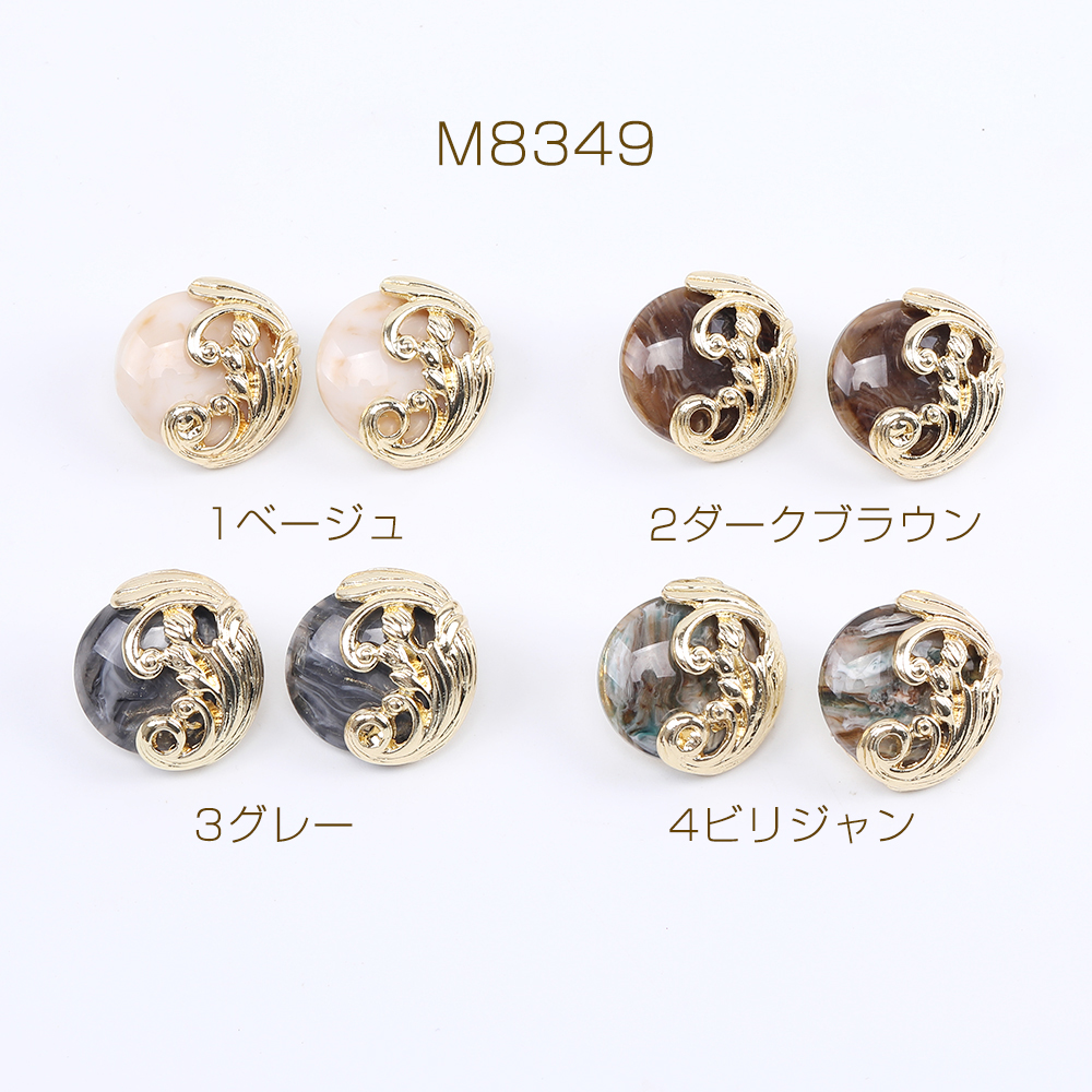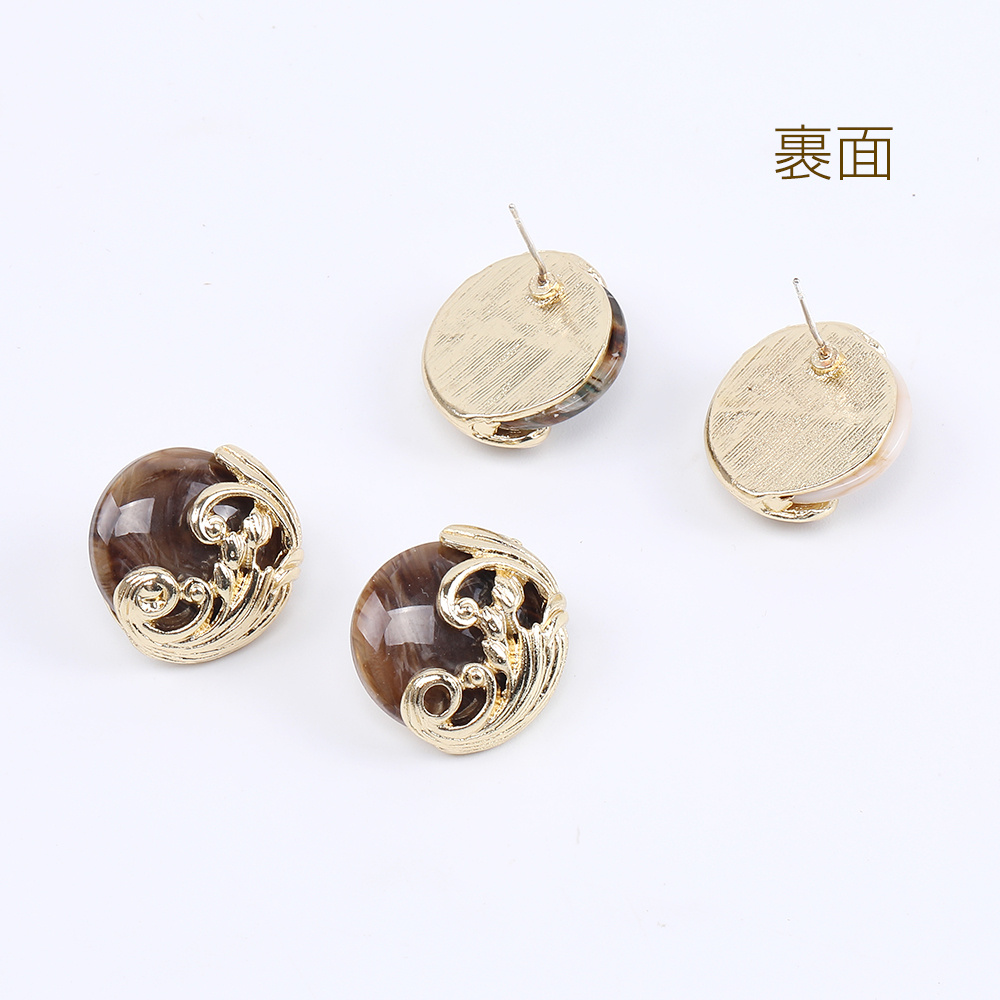 デザインピアス 樹脂付きピアス ラウンドピアス 20×21mm ゴールド(2ヶ)
