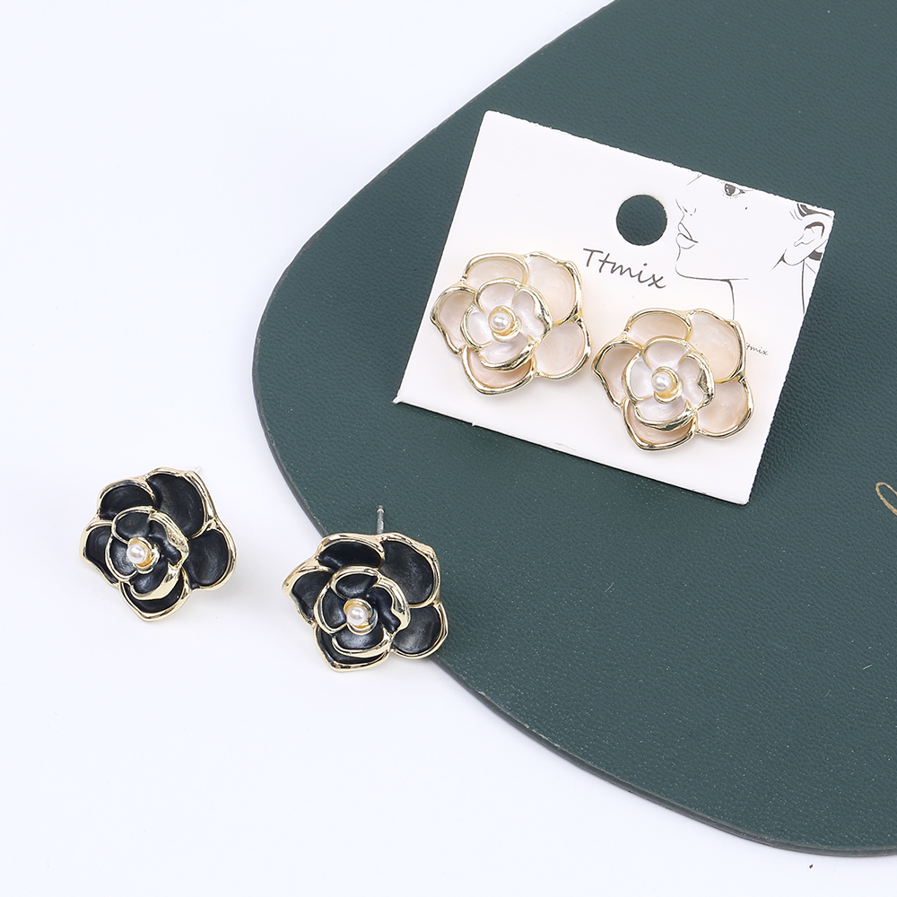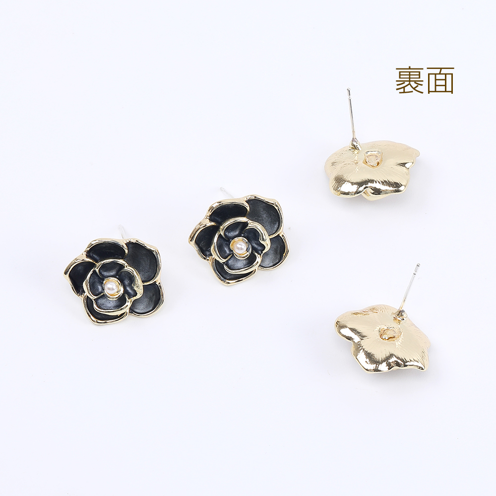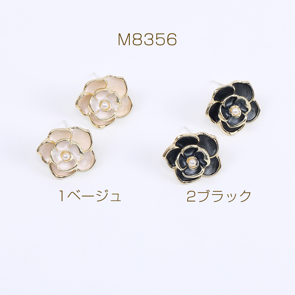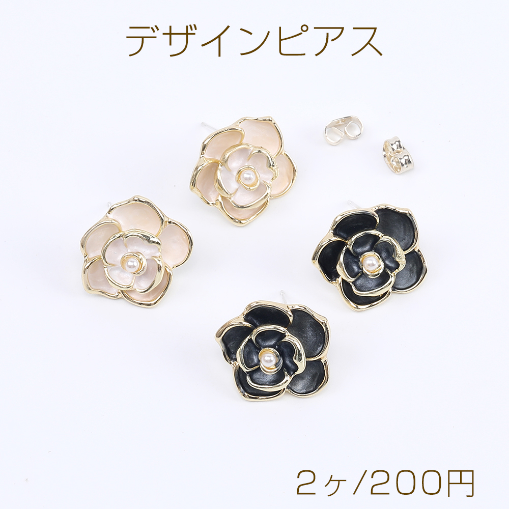 デザインピアス エポ&パール付きピアス フラワーピアス 18×19mm ゴールド(2ヶ)