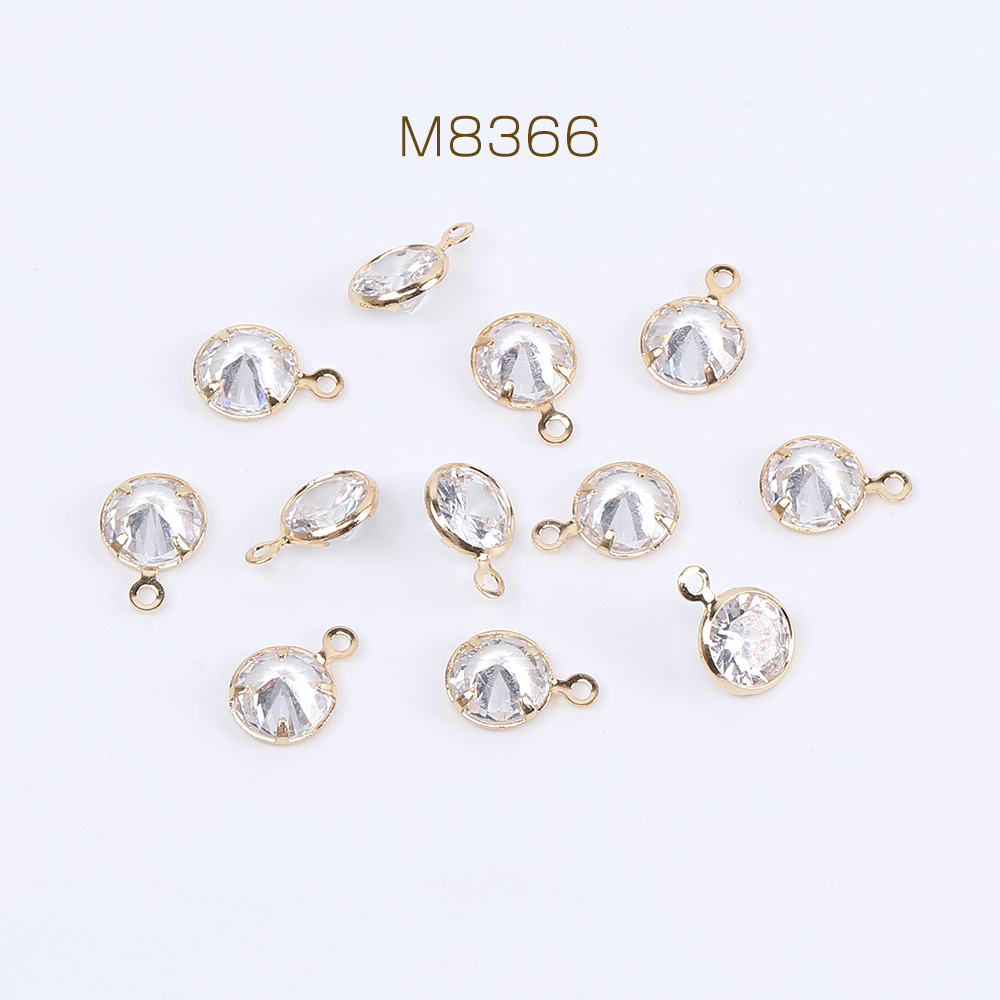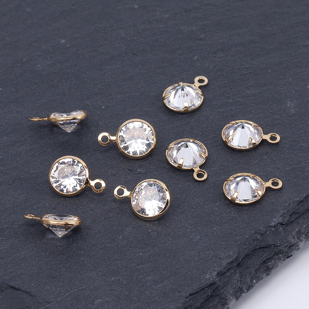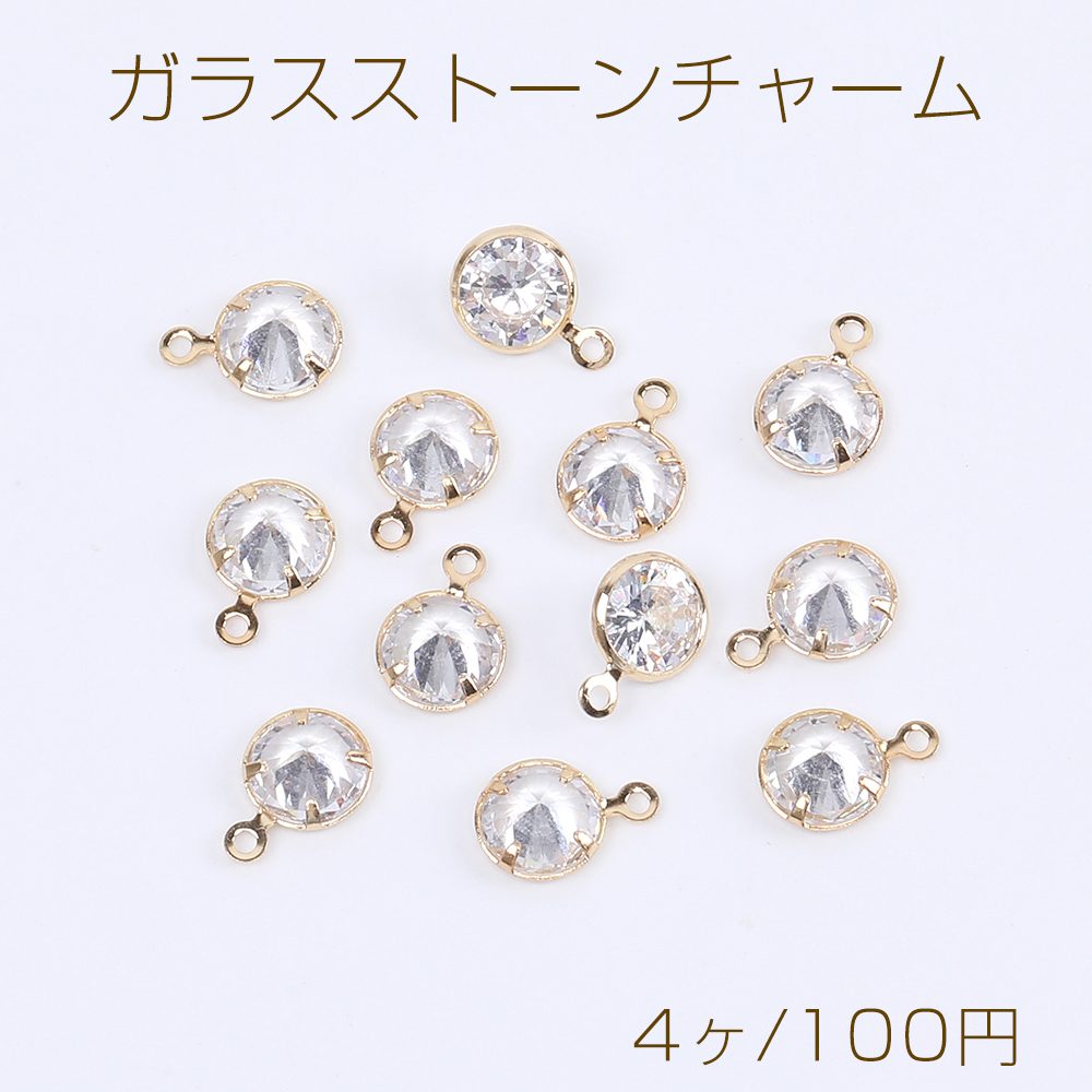 ガラスストーンチャーム ラウンド 7mm カン付き ゴールド クリスタル(4ヶ)