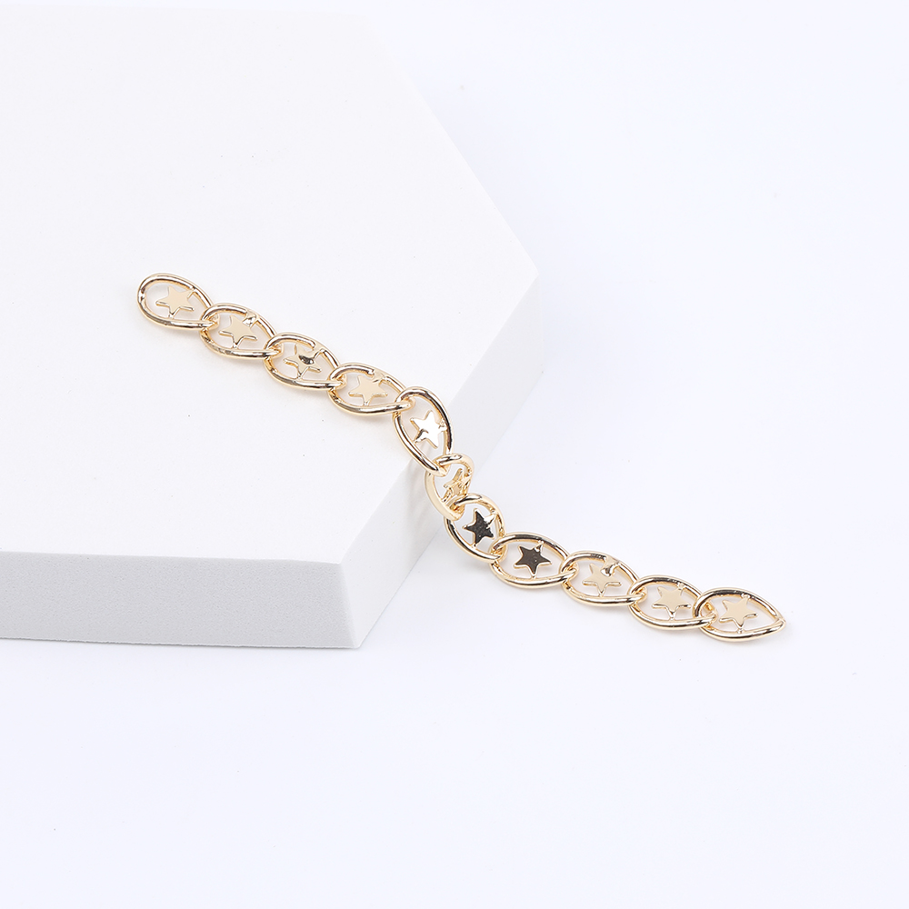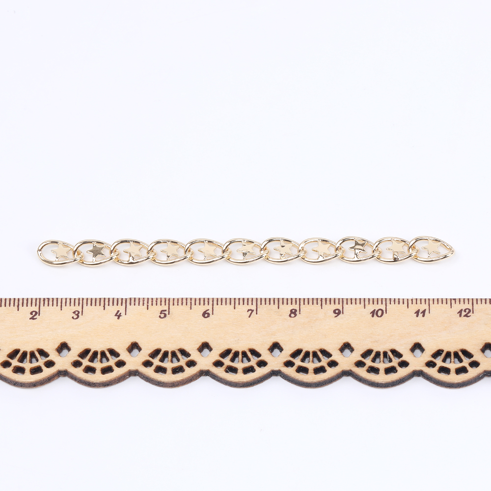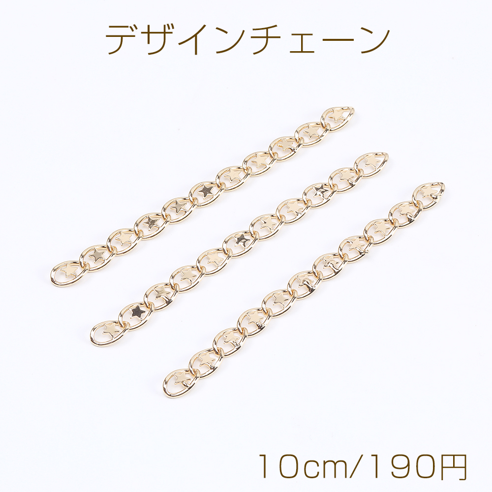 高品質デザインチェーン ハンドメードチェーン オーバル&星形 7×11mm 16Kゴールドメッキ 色落ちしにくい(10cm)