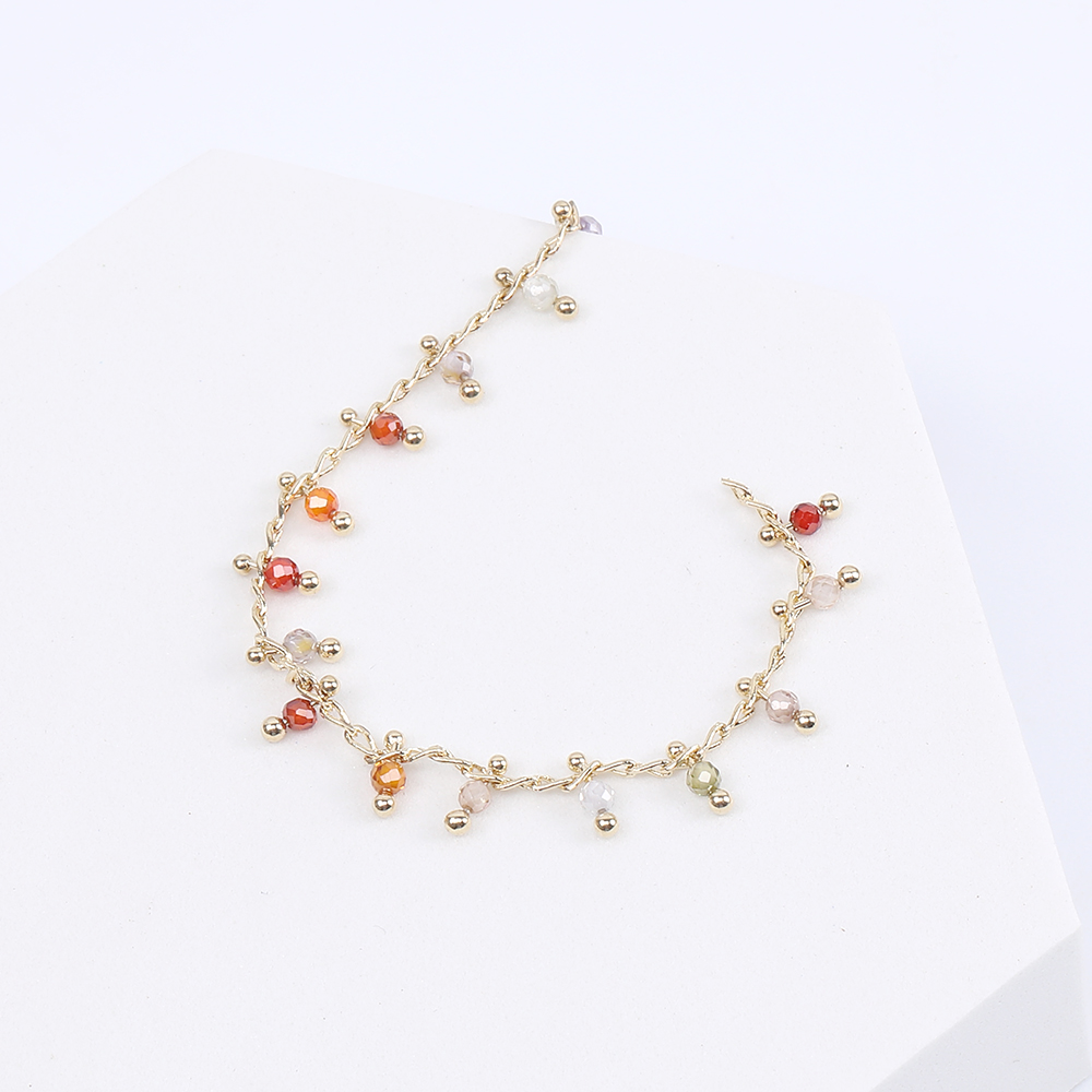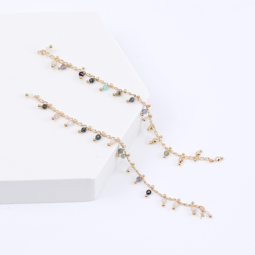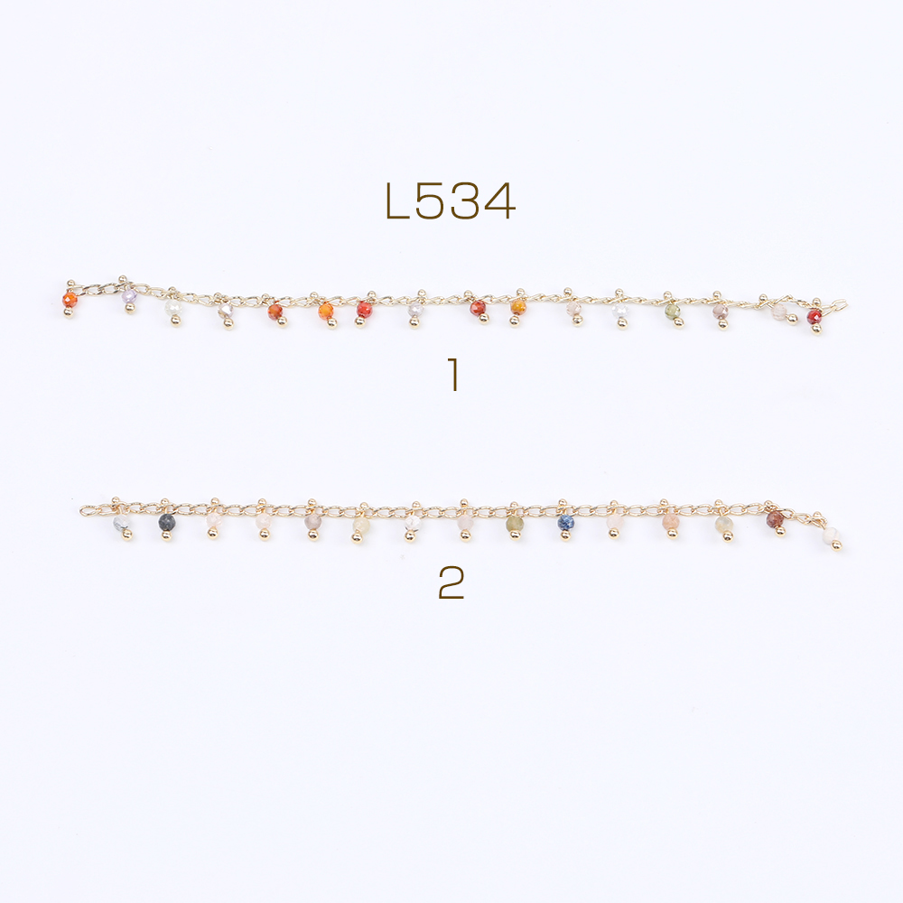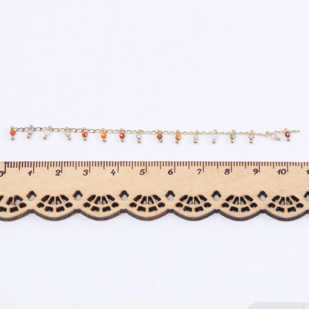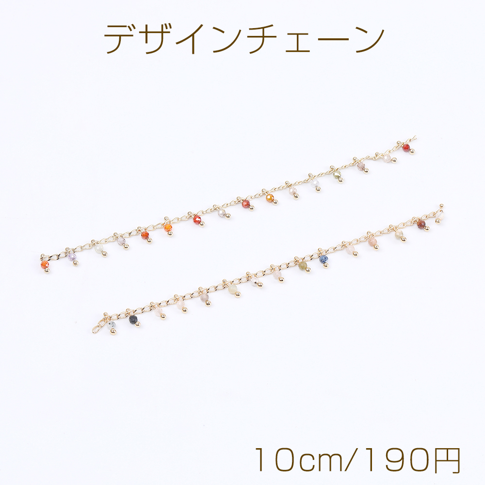 高品質デザインチェーン ハンドメードチェーン ビーズ付き 幅7mm 16Kゴールドメッキ 色落ちしにくい