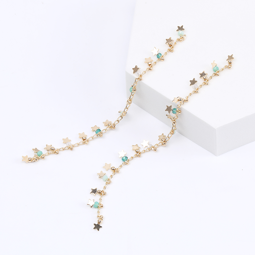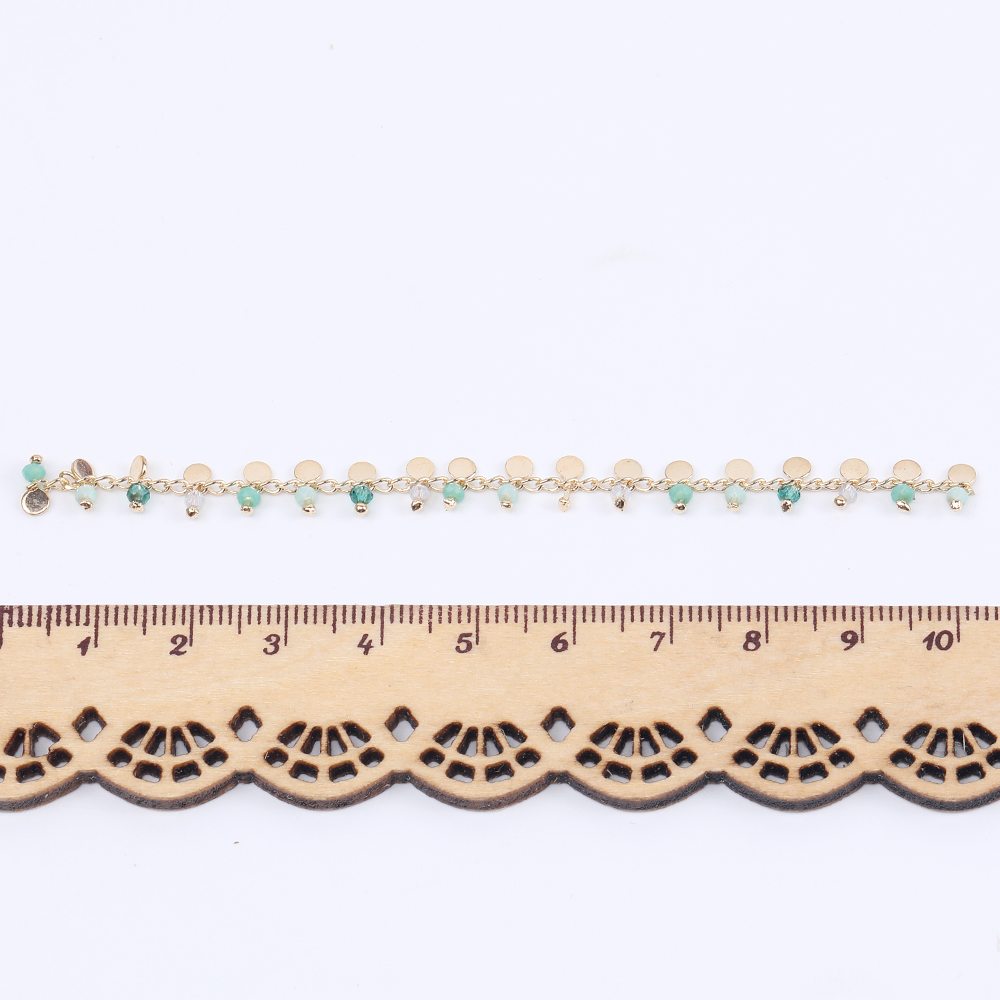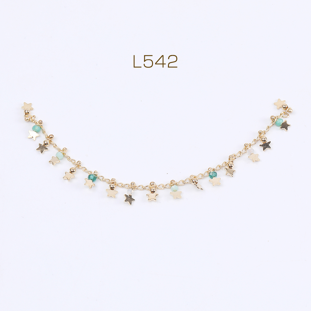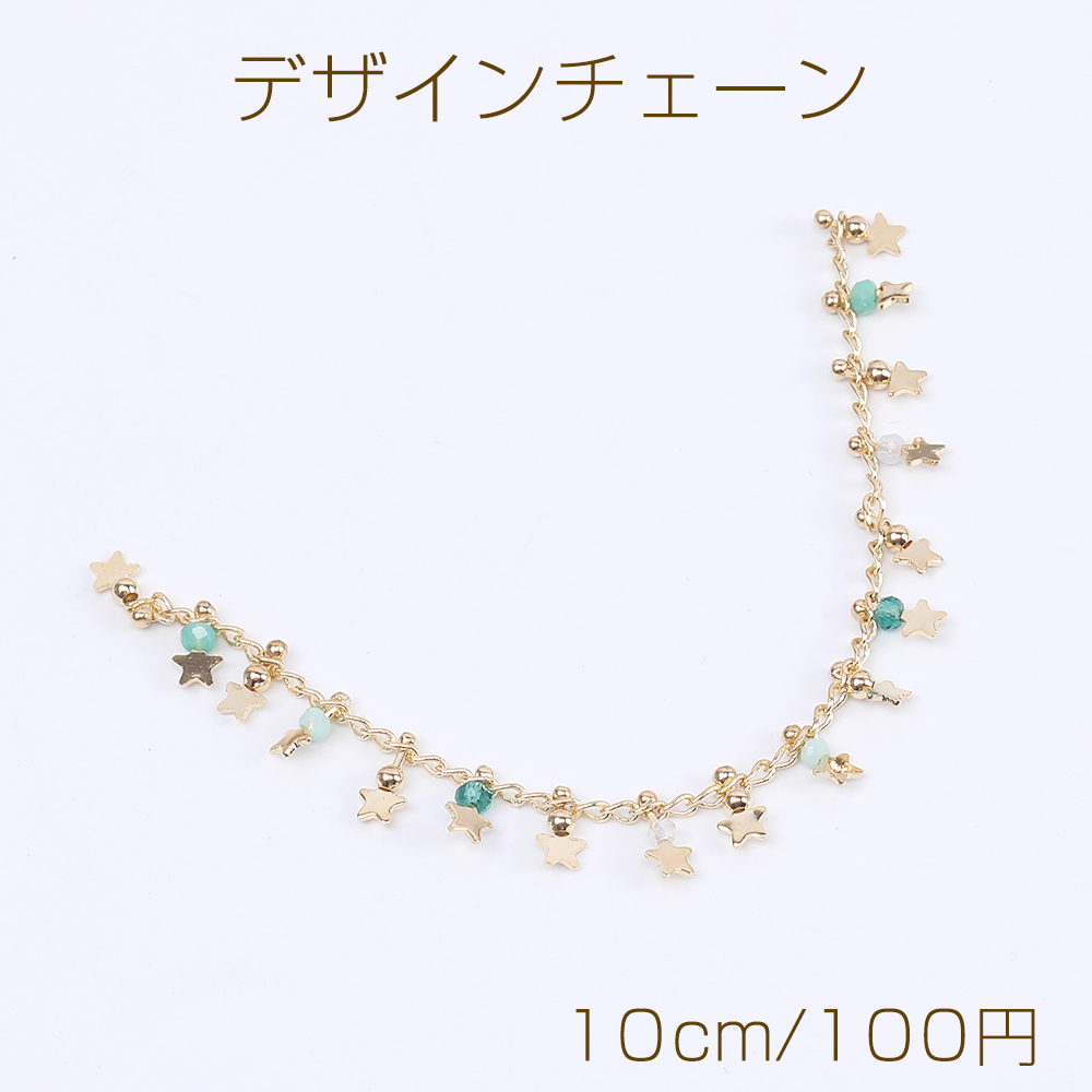 高品質デザインチェーン ハンドメードチェーン ビーズ&星形付き 幅7mm 16Kゴールドメッキ 色落ちしにくい(10cm)