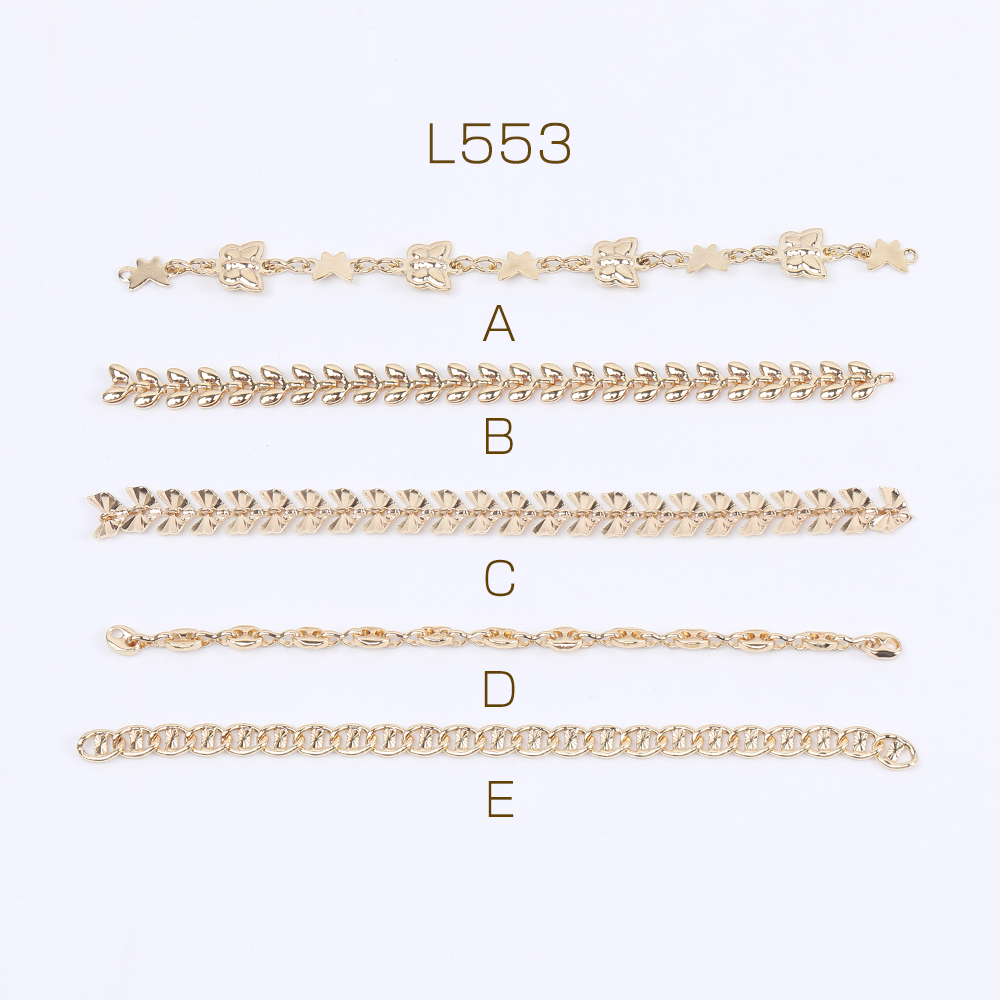高品質デザインチェーン ハンドメードチェーン 全5種 16Kゴールドメッキ 色落ちしにくい