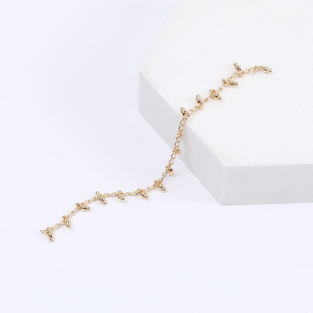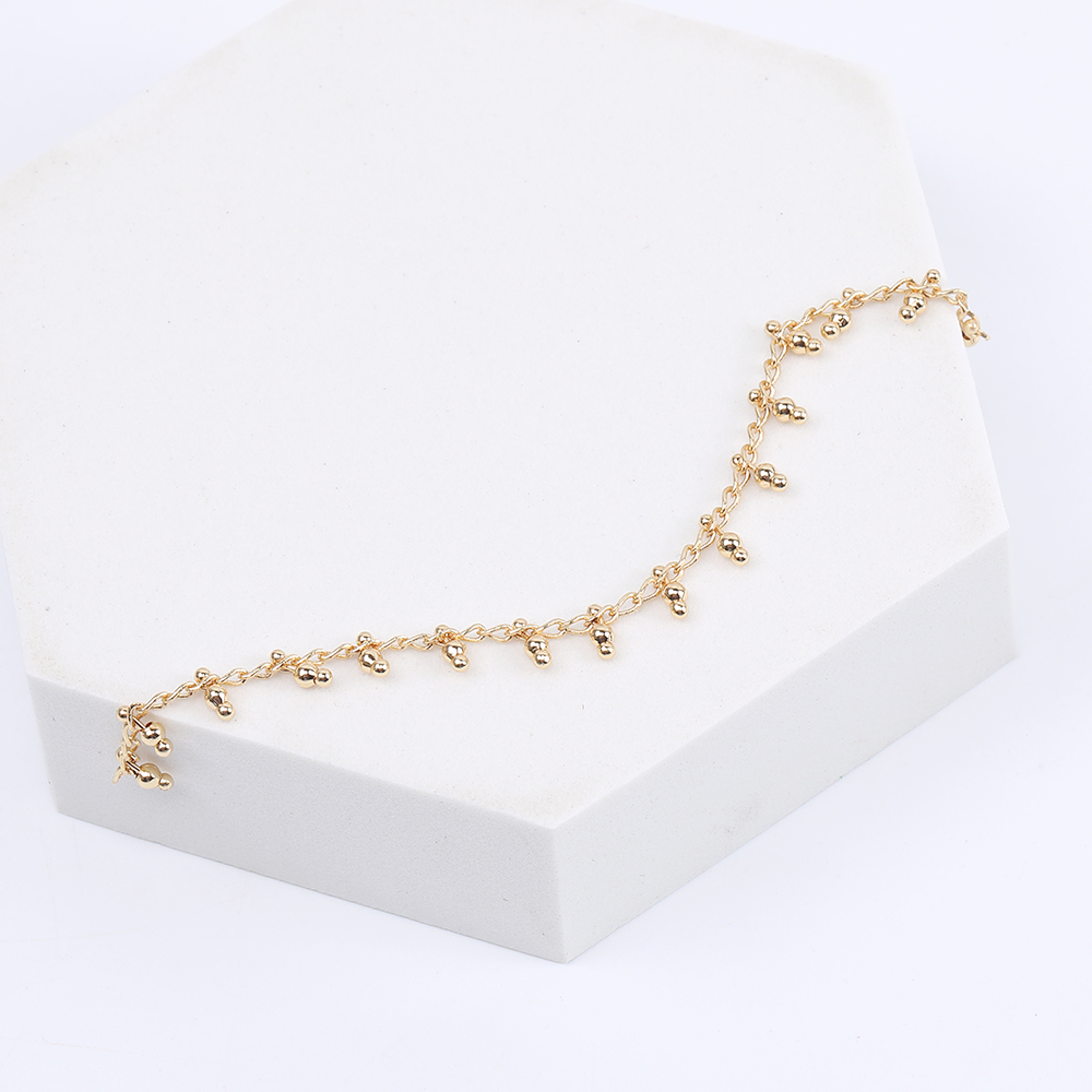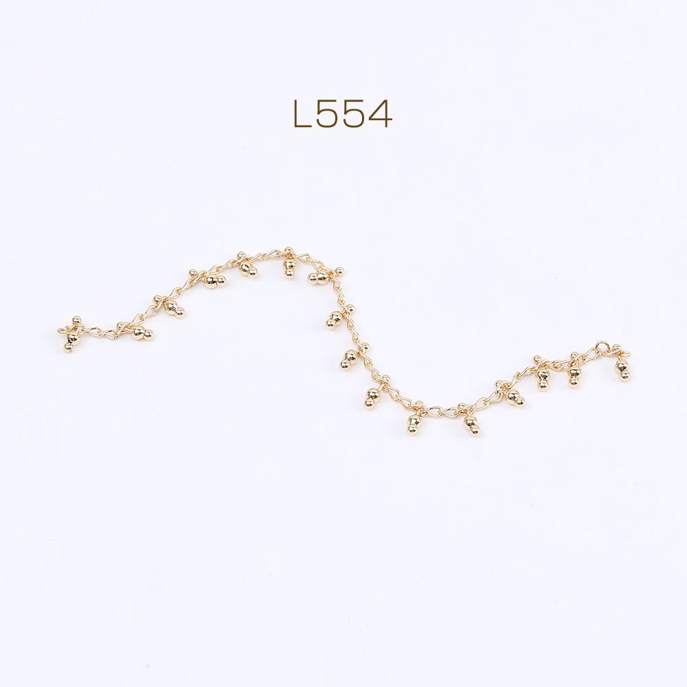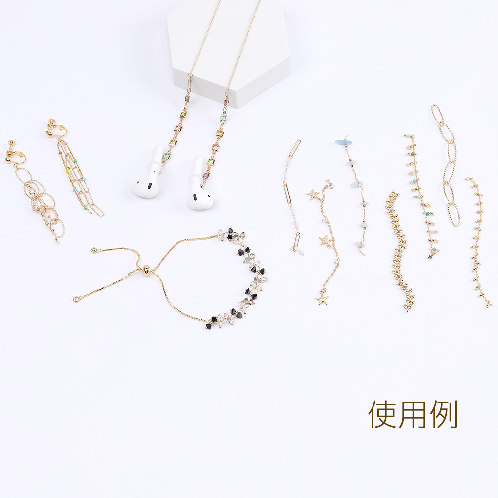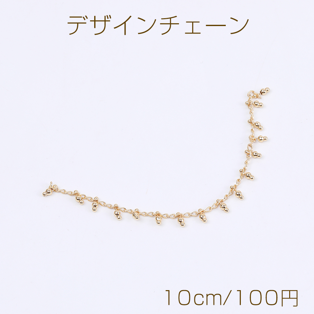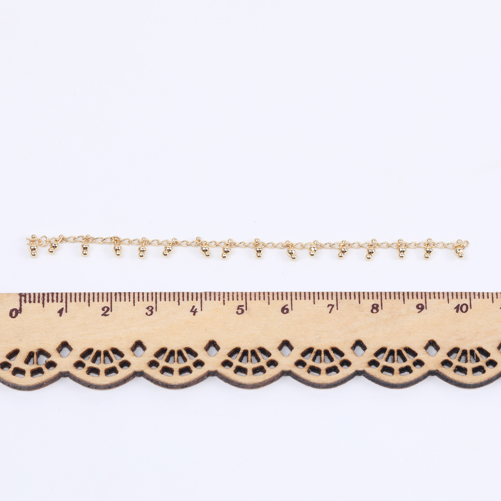 高品質デザインチェーン ハンドメードチェーン ビーズ付き 幅5mm 16Kゴールドメッキ 色落ちしにくい(10cm)