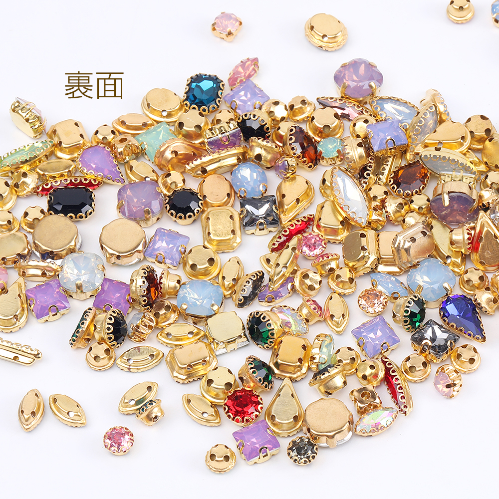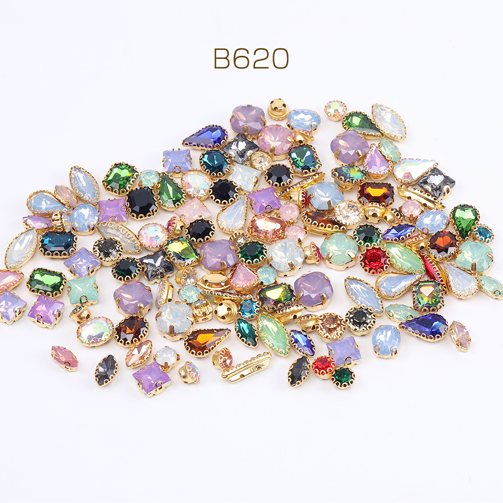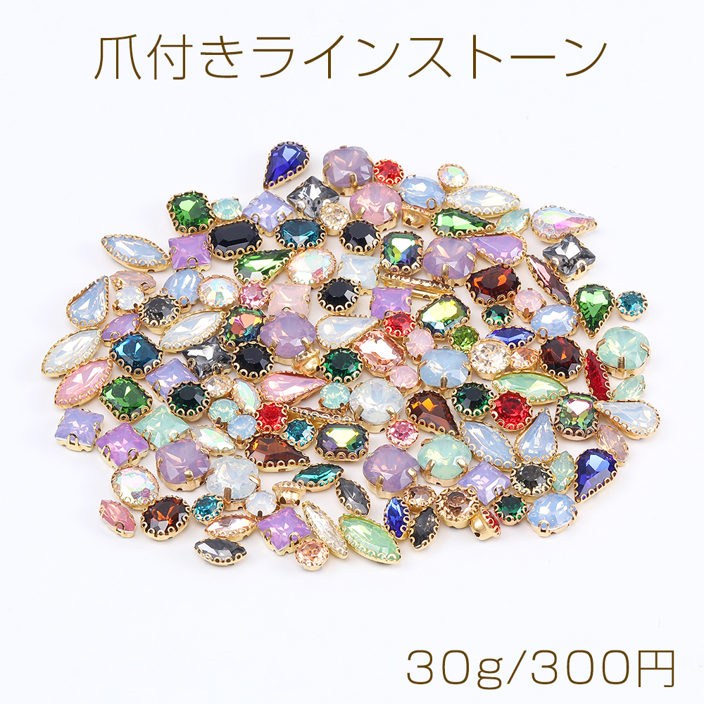 爪付きラインストーン&樹脂ストーン ミックスカラー ゴールド 30g(約85ヶ)