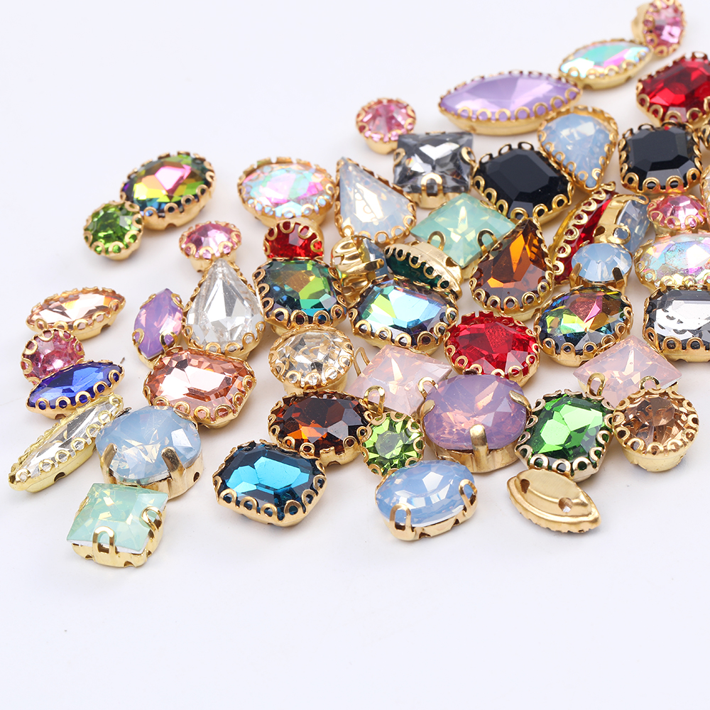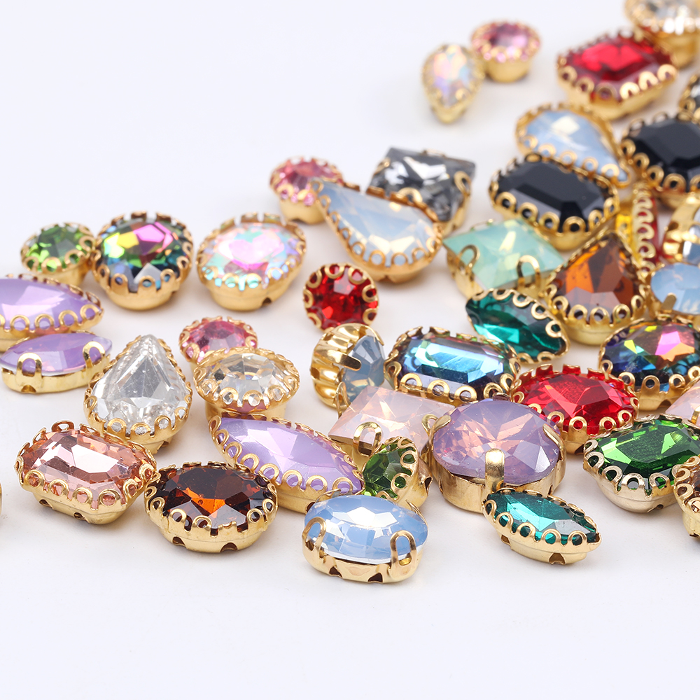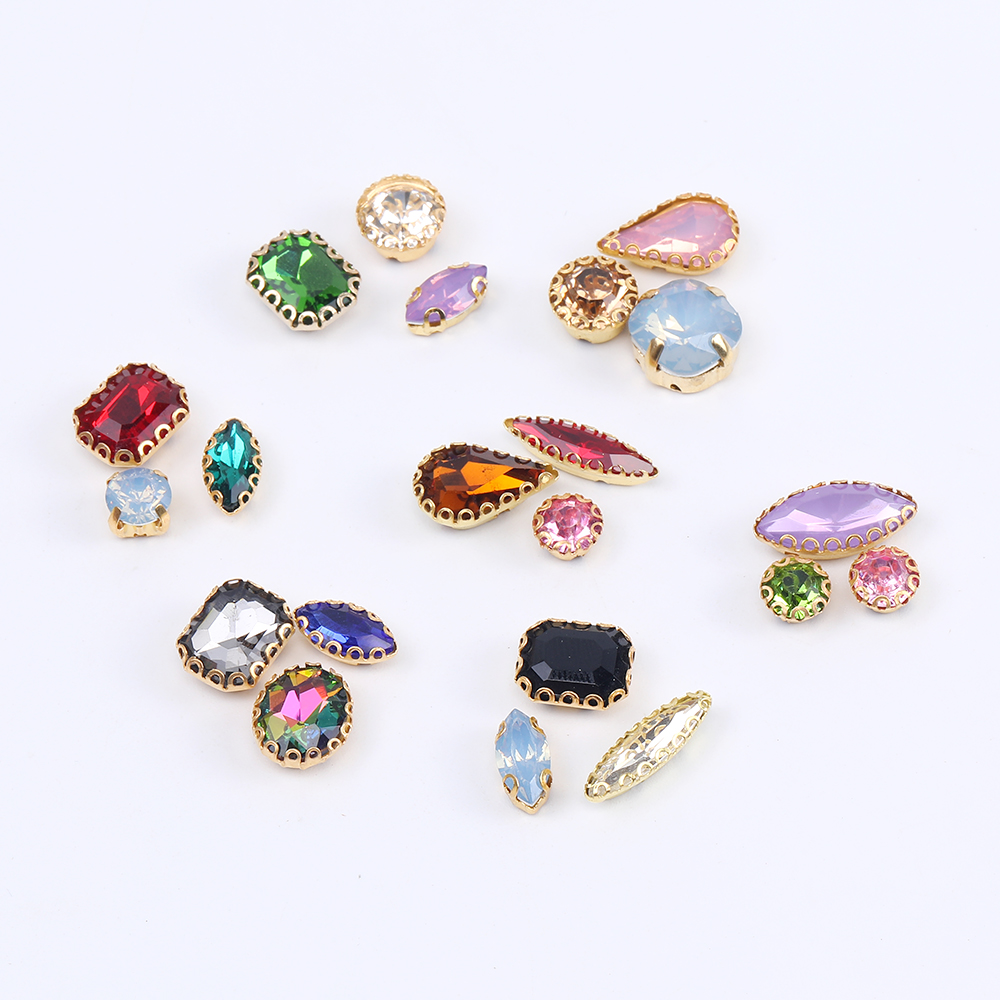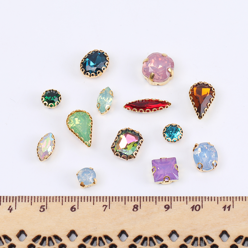 爪付きラインストーン&樹脂ストーン ミックスカラー ゴールド 30g(約85ヶ)
