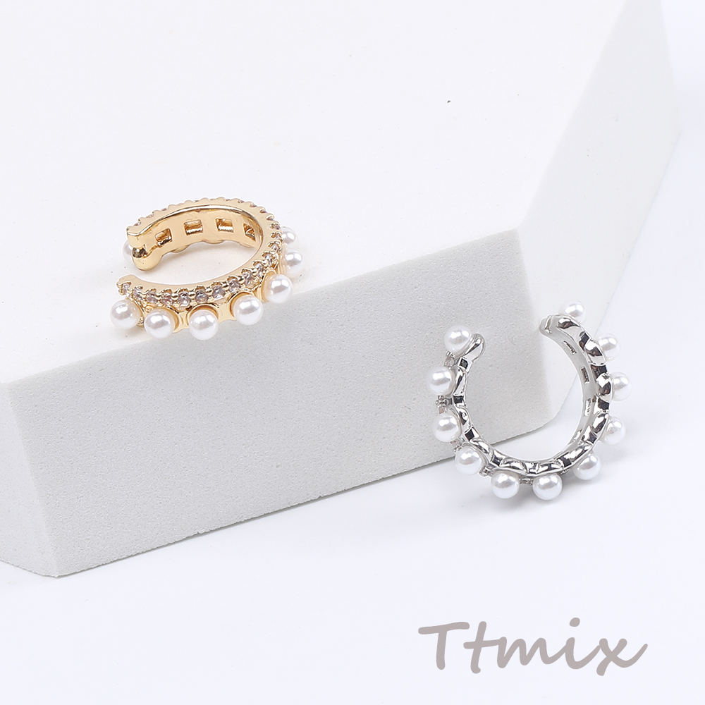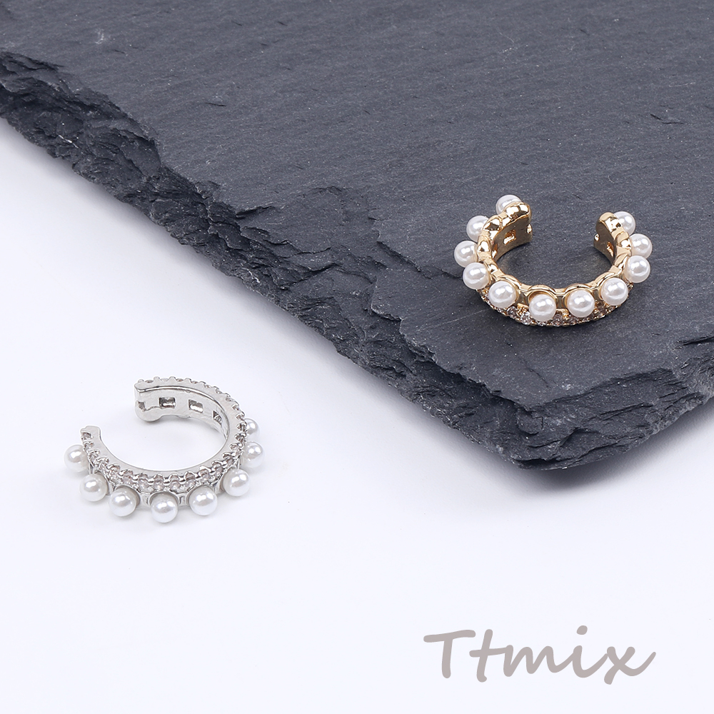 ジルコニア&パール付きイヤーカフ 18mm 片耳用(1ヶ)