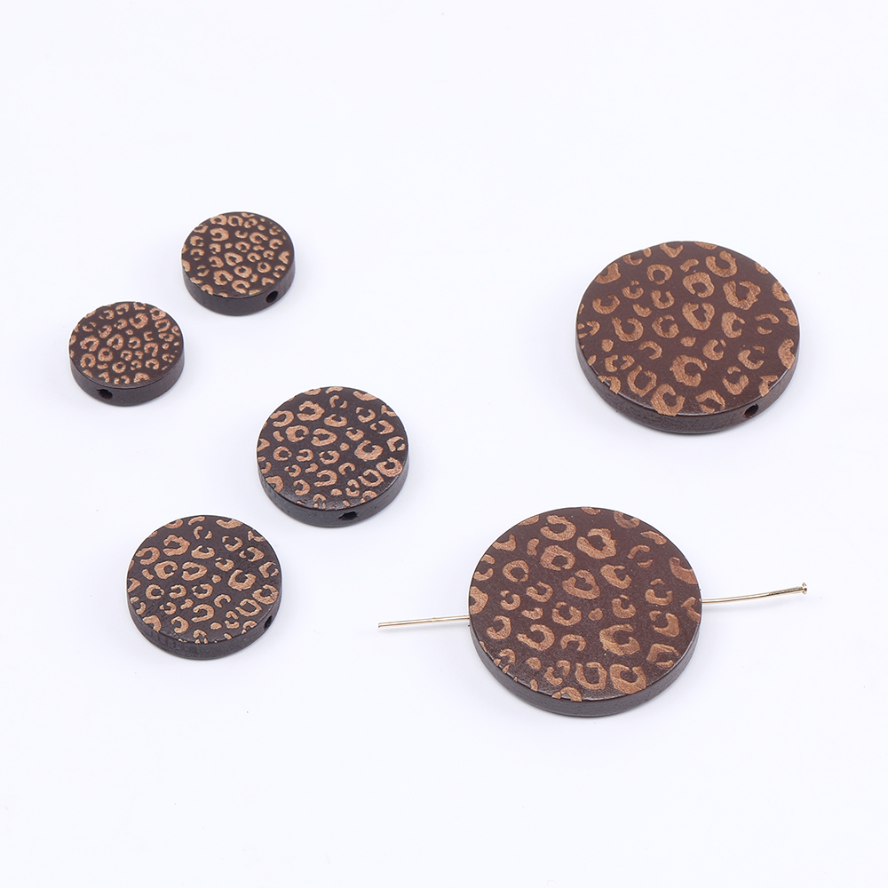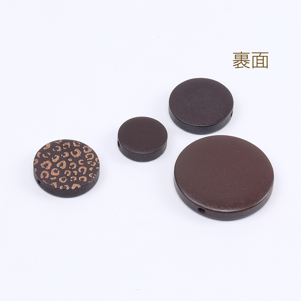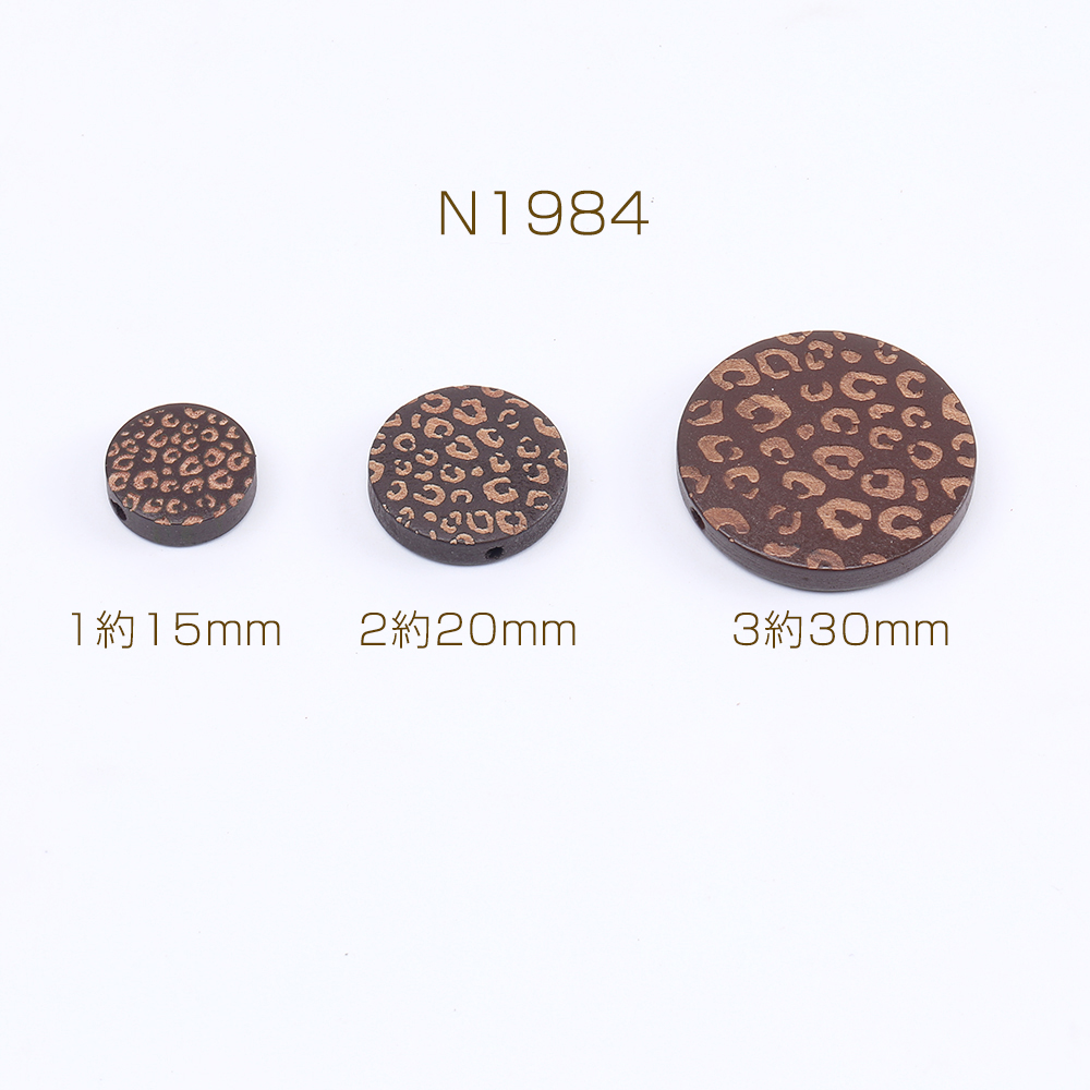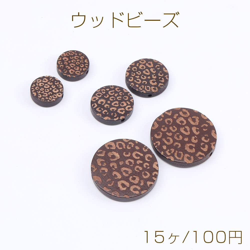 ウッドビーズ コイン型ビーズ アニマル柄 ヒョウ柄 ブラウン 3サイズ