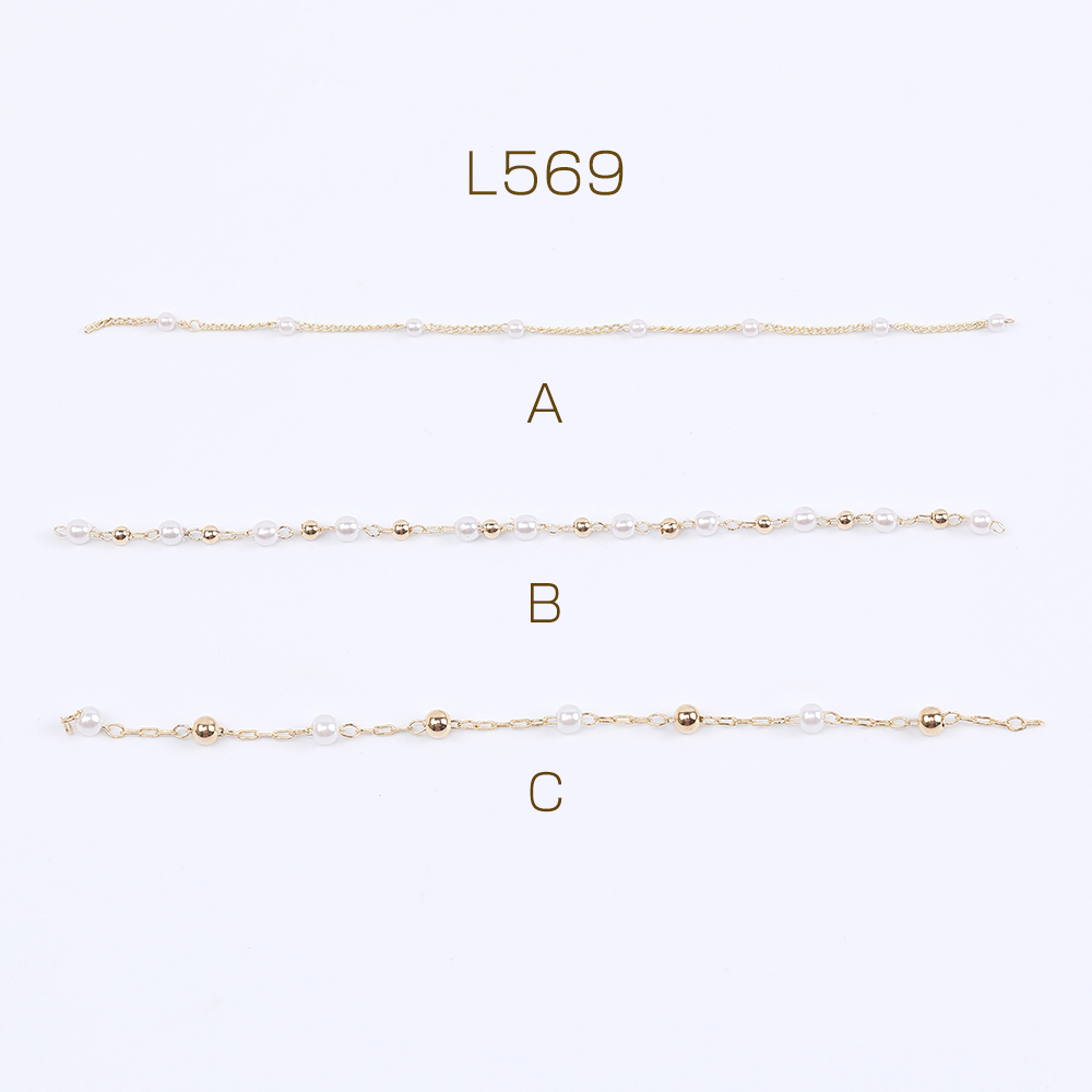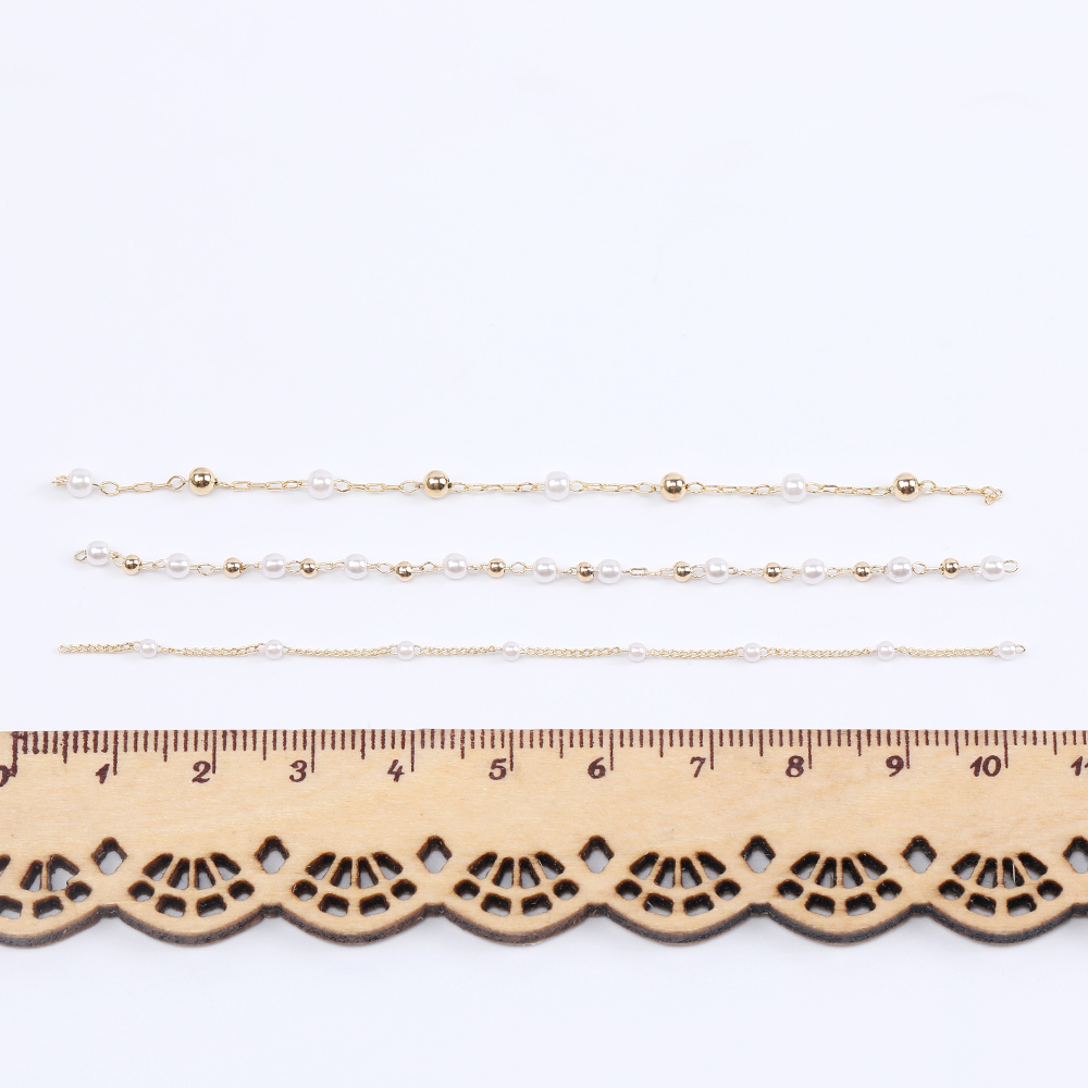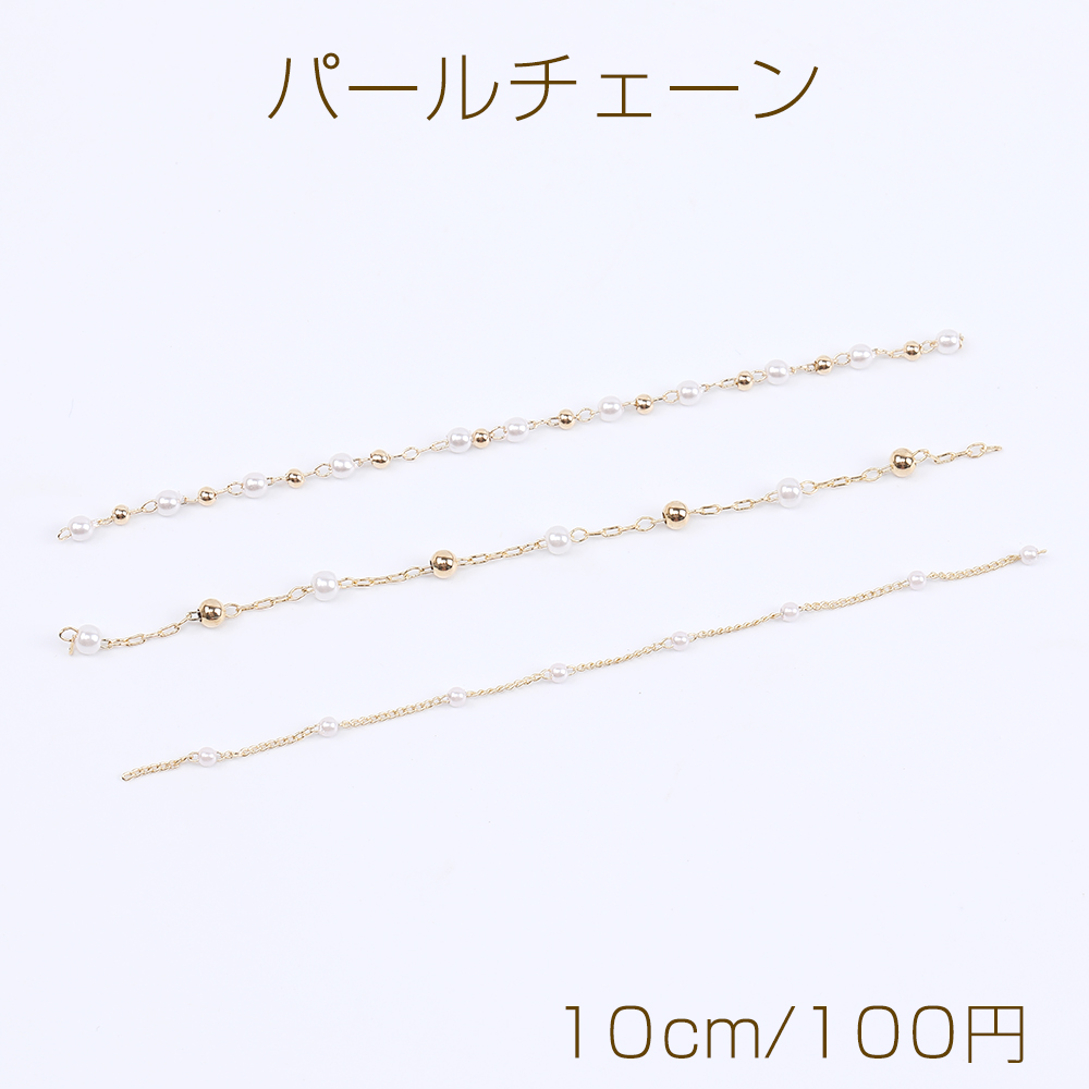 高品質パールチェーン ハンドメードチェーン 全3種 16Kゴールドメッキ 色落ちしにくい