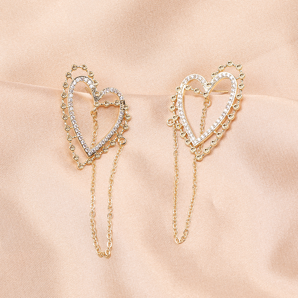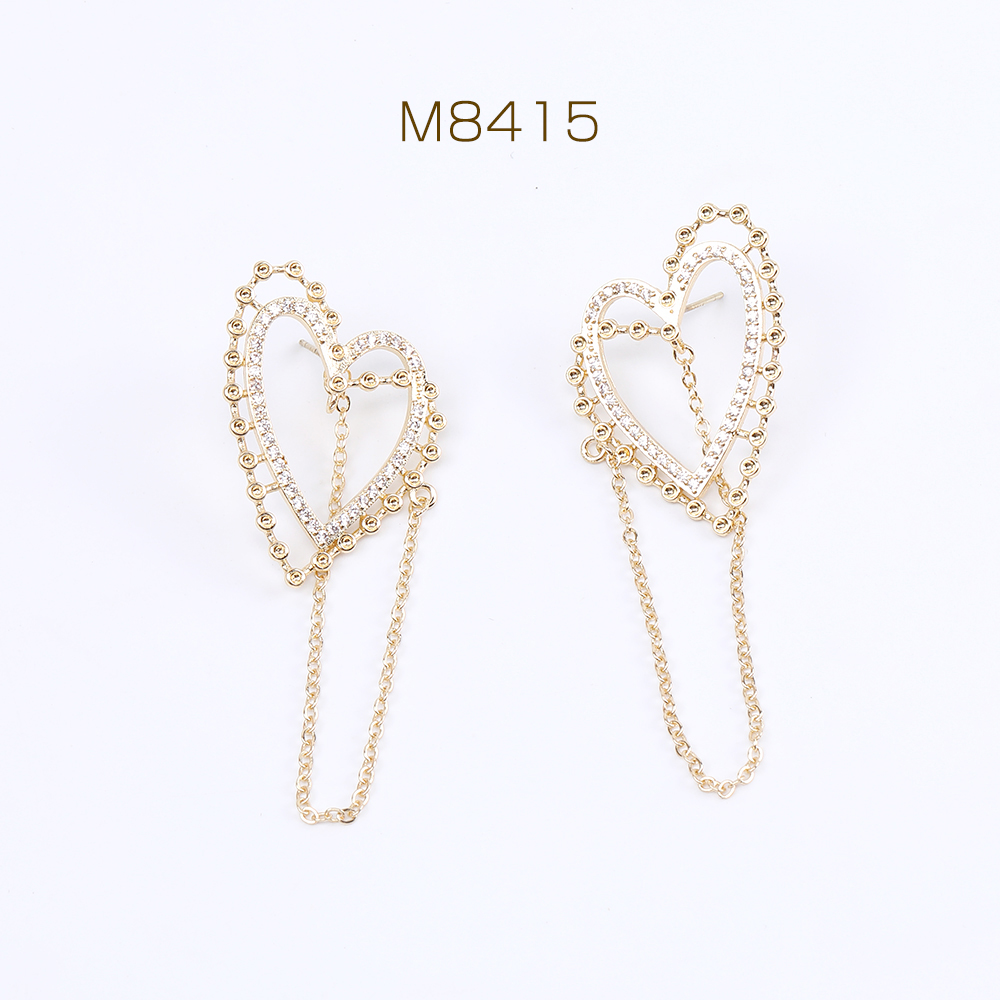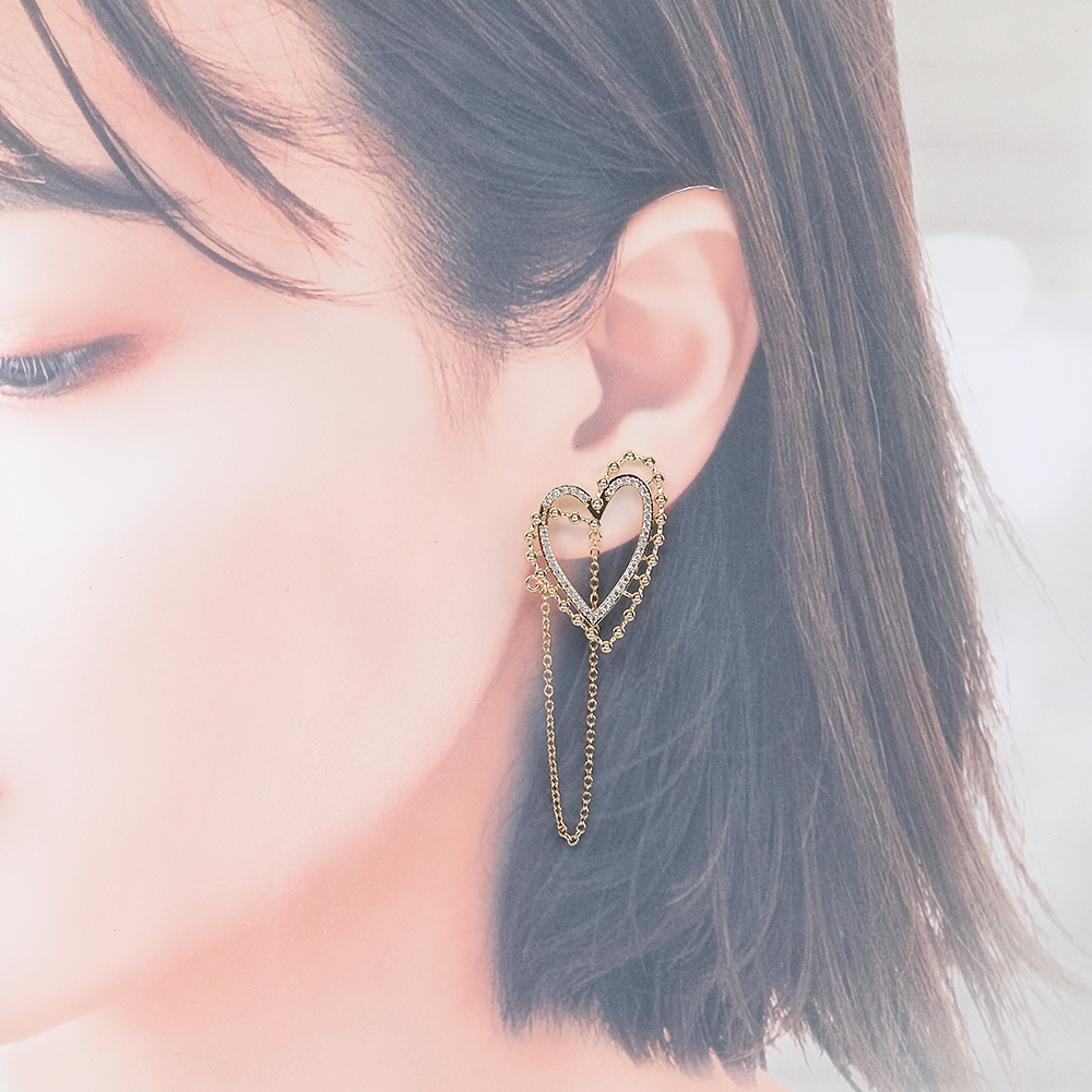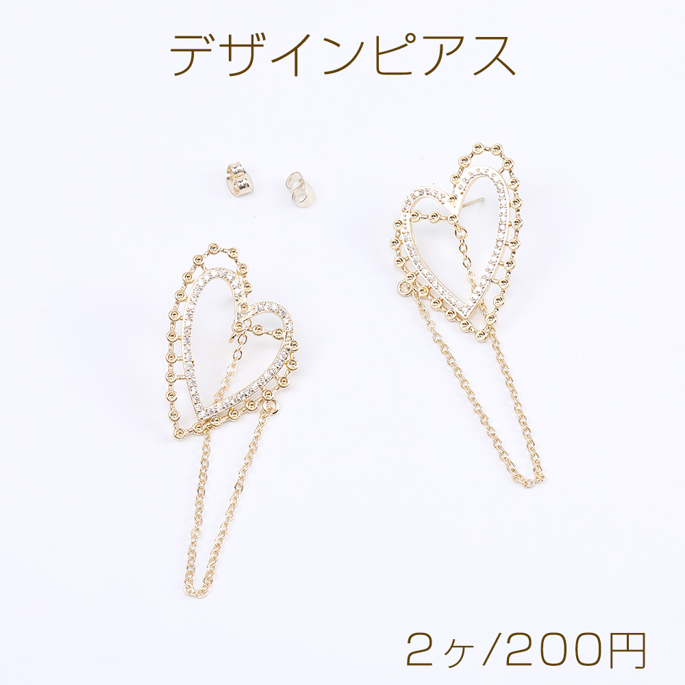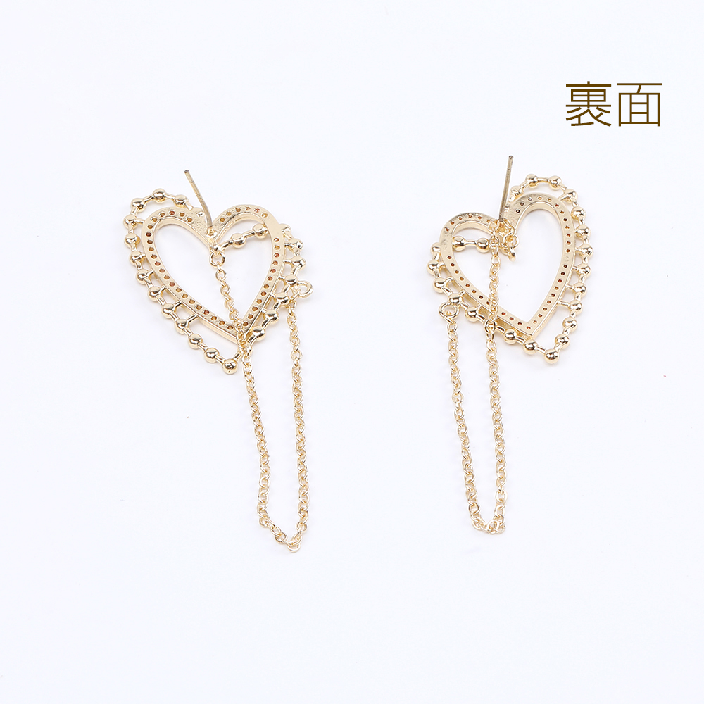 高品質デザインピアス ジルコニアピアス ハート型ピアス 25×35mm ゴールド(2ヶ)