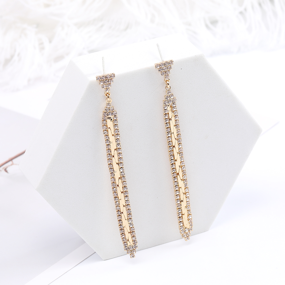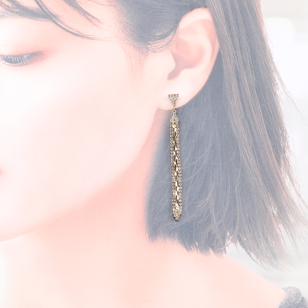 高品質デザインピアス ジルコニアピアス 6×77mm ゴールド(2ヶ)