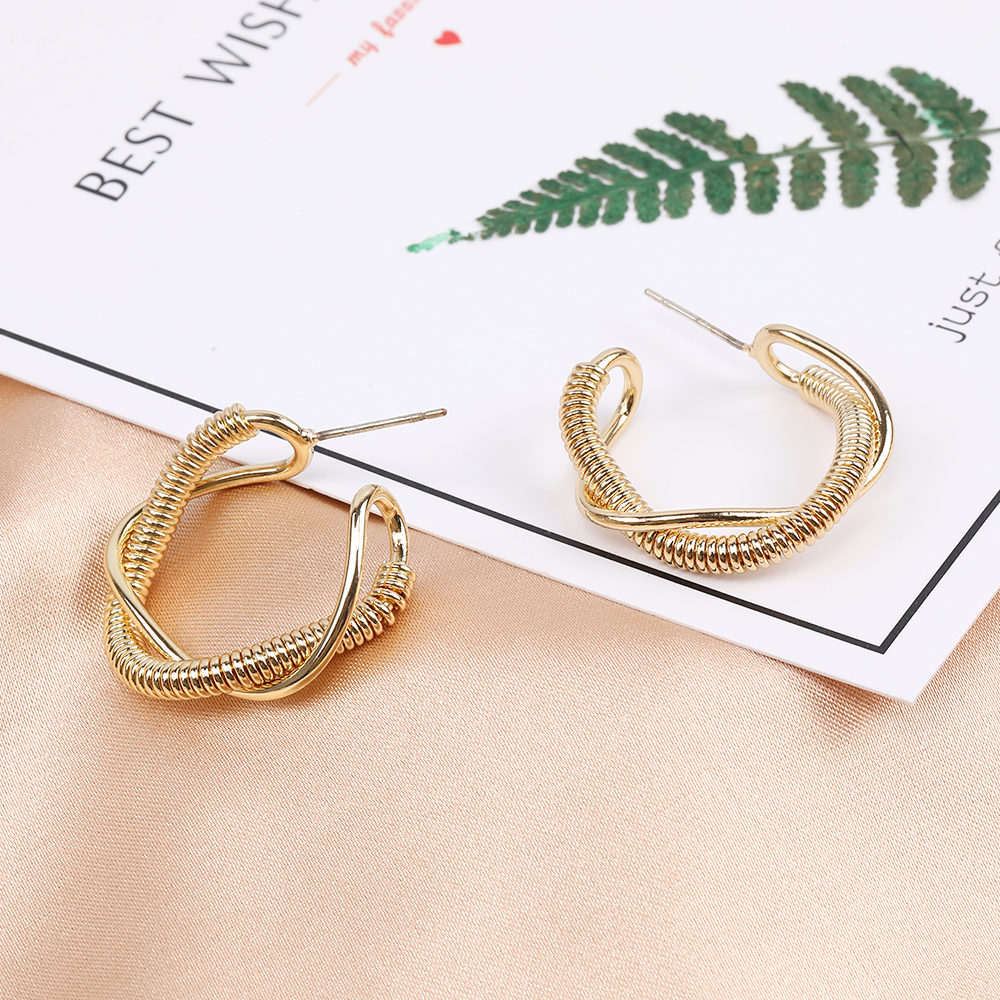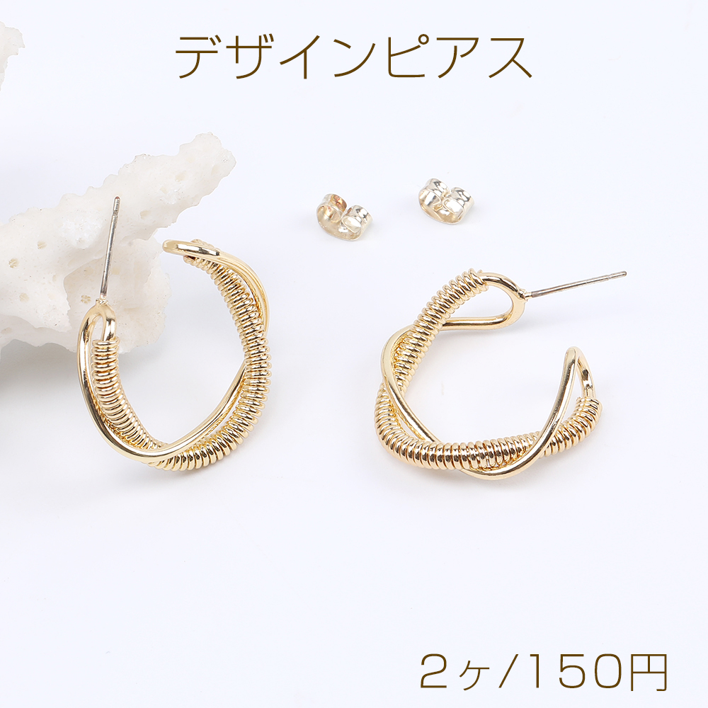 高品質デザインピアス ツイストフープピアス 5×26mm ゴールド(2ヶ)