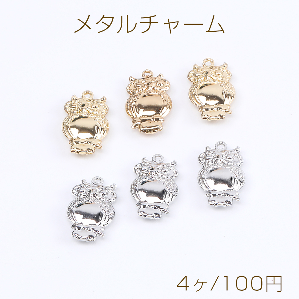 メタルチャーム フクロウチャーム ふくろうチャーム カン付き 11×18mm(4ヶ)