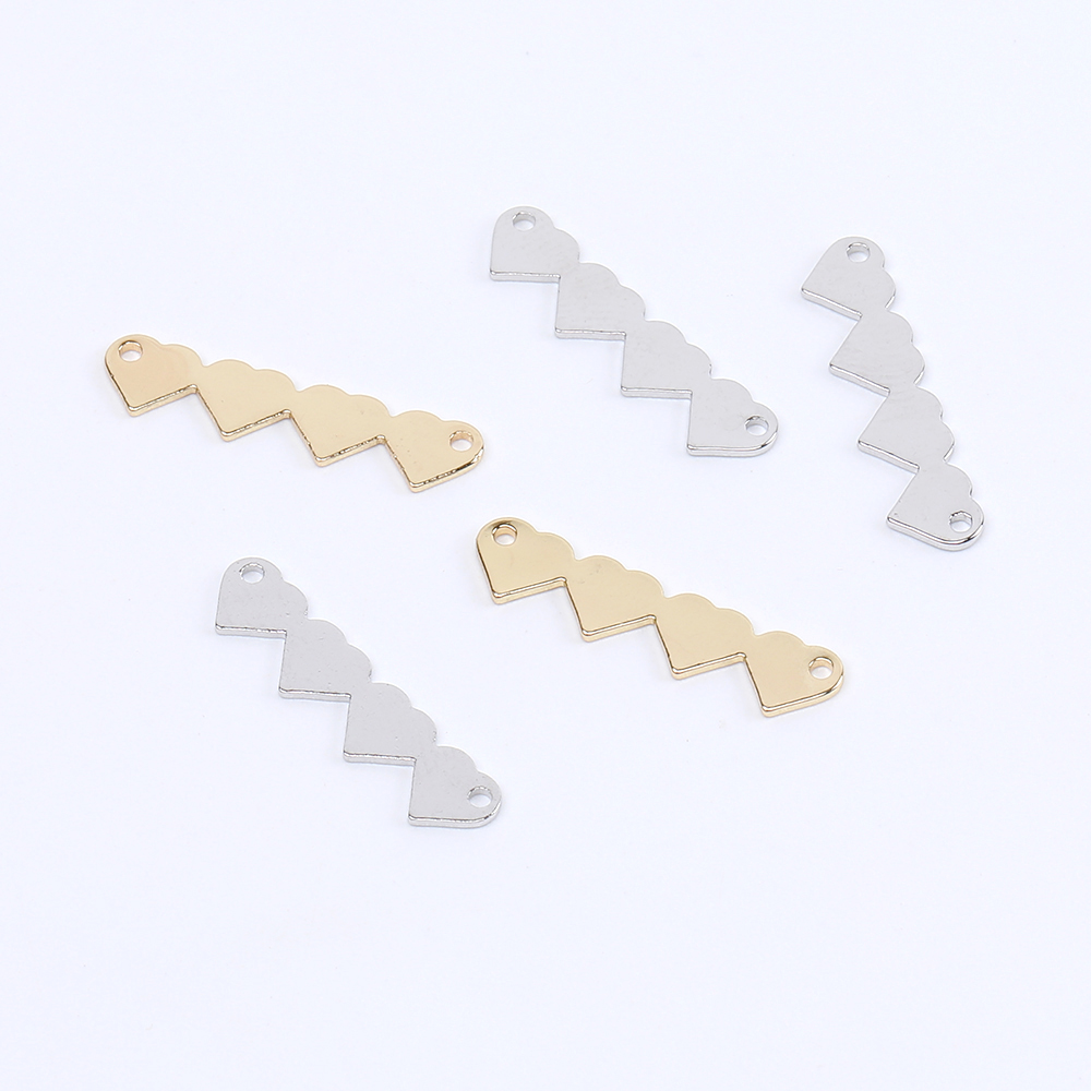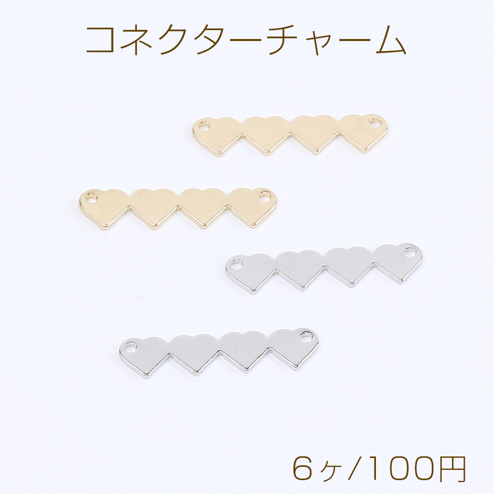 高品質コネクターチャーム 4連ハート型 2穴 5×21mm(6ヶ)