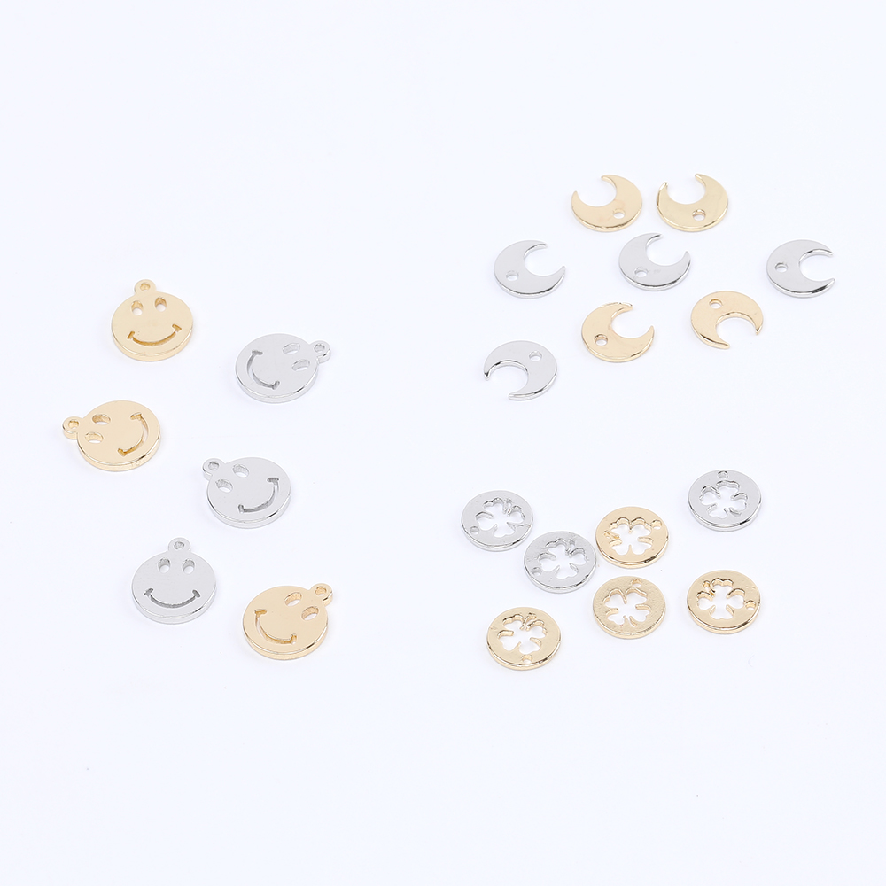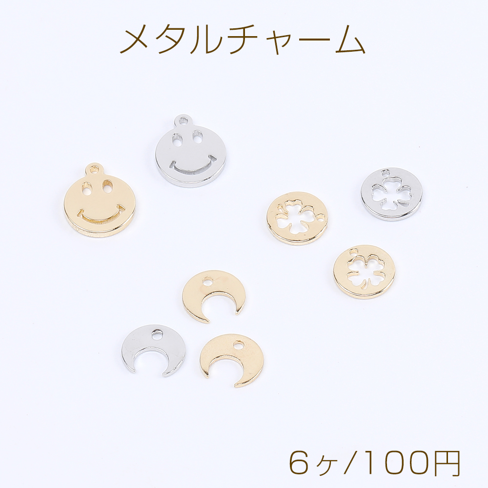 高品質メタルチャーム メタルプレートチャーム スマイリー クローバー 月型(6ヶ)