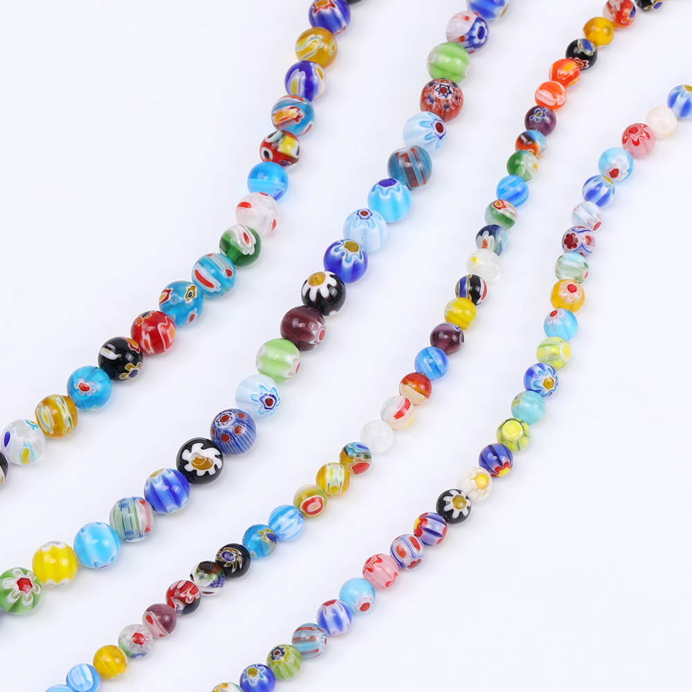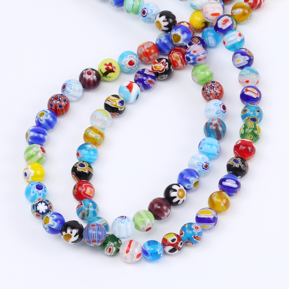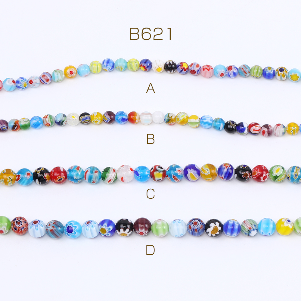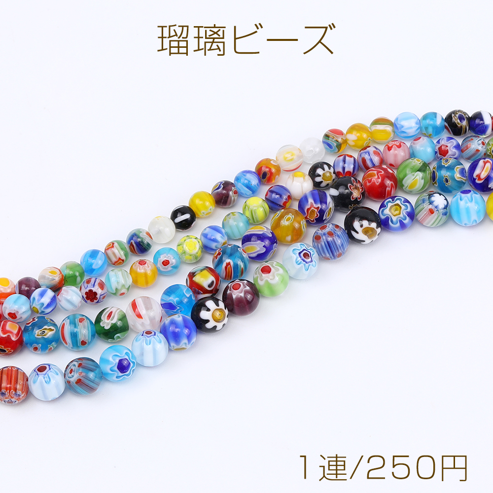 瑠璃ビーズ 丸玉 フラワー柄(1連)
