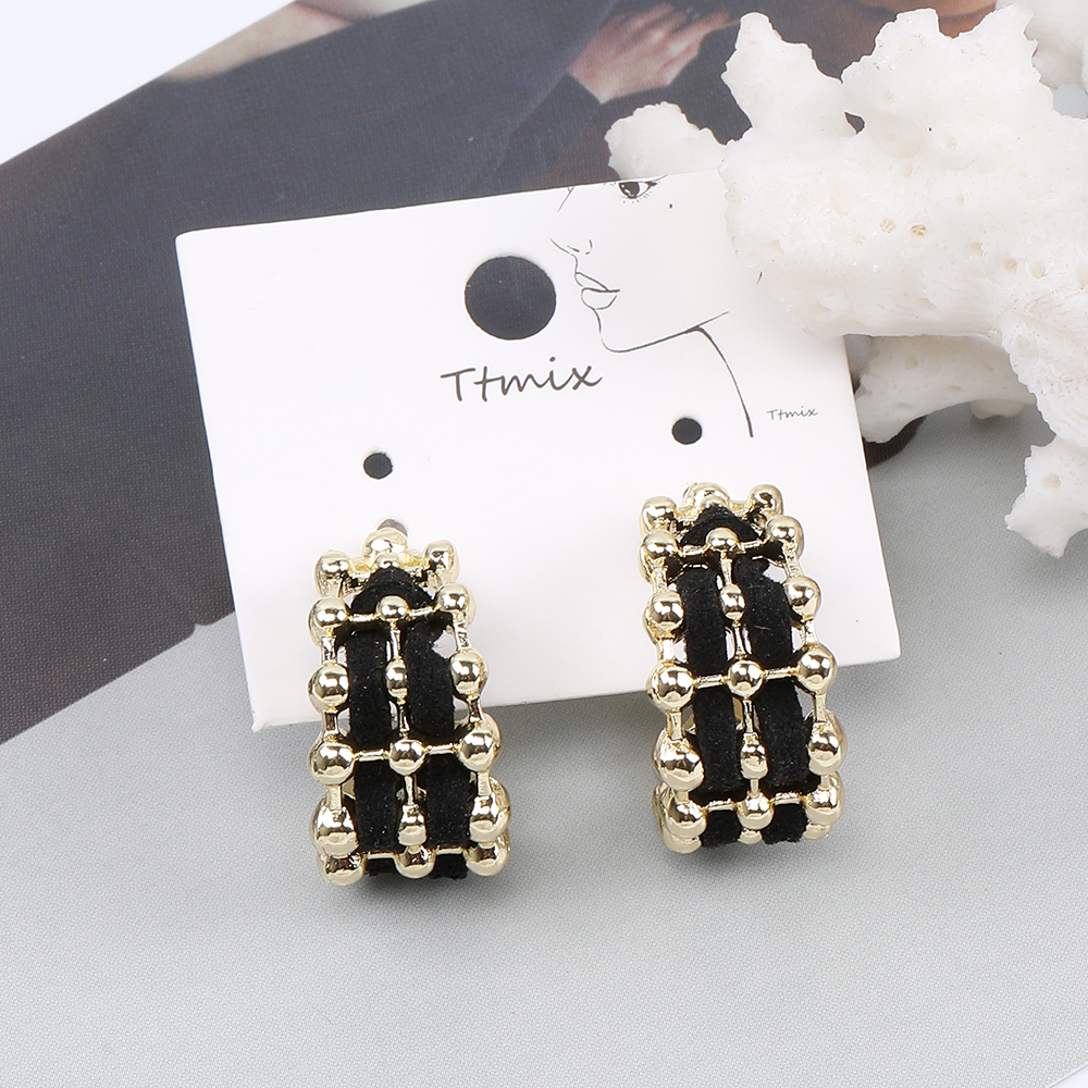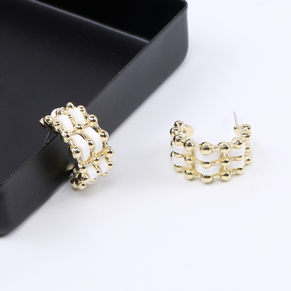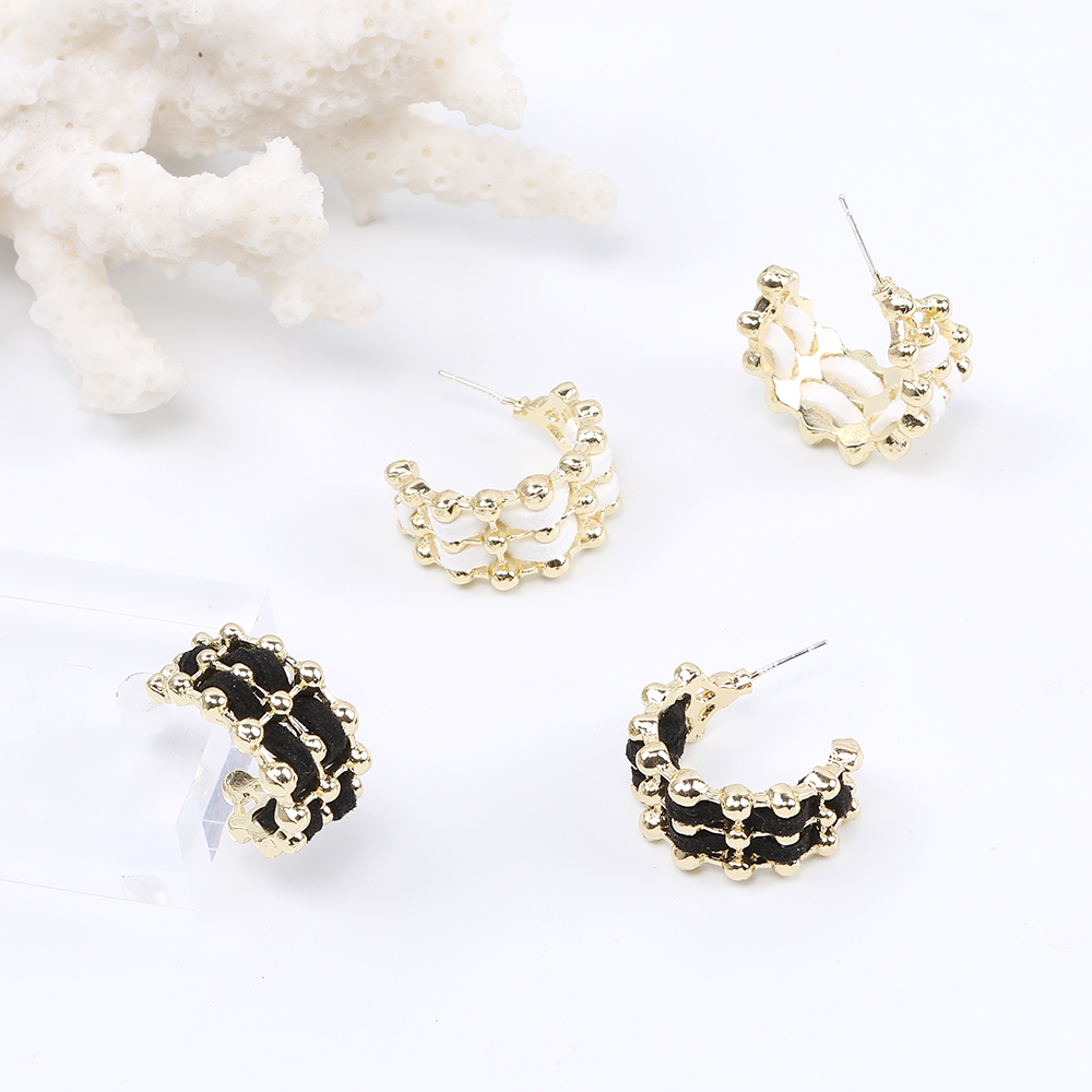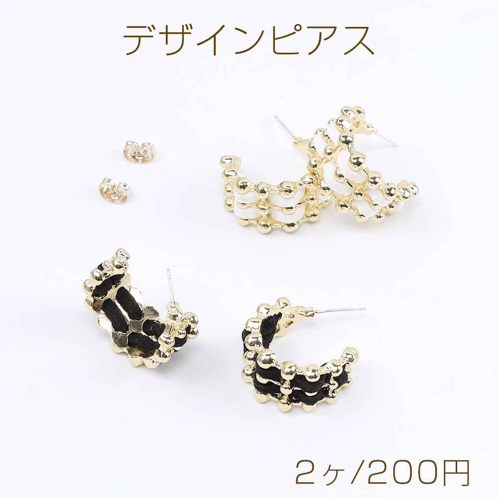高品質デザインピアス スウェード紐付きピアス Cフープ 13×23mm ゴールド(2ヶ)