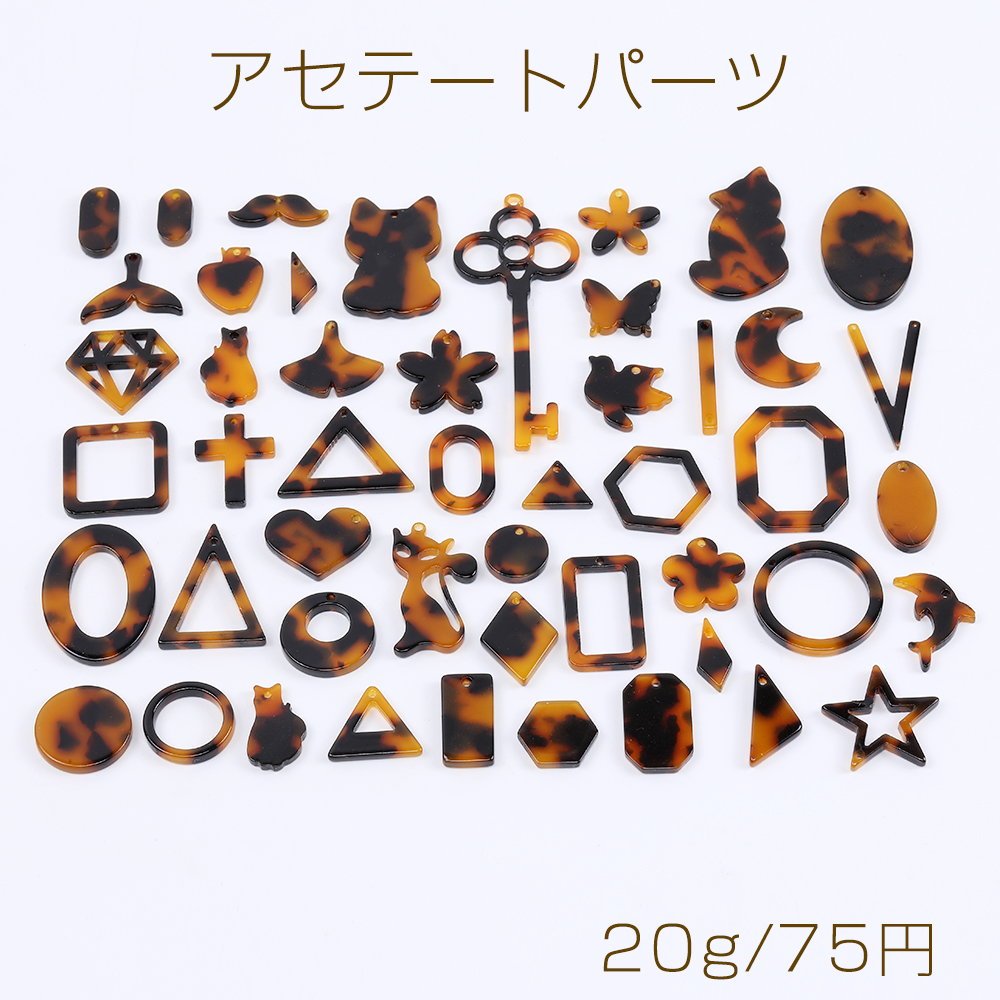 アセテートパーツ ミックス ヒョウ柄 ブラウン 20g(約42ヶ)