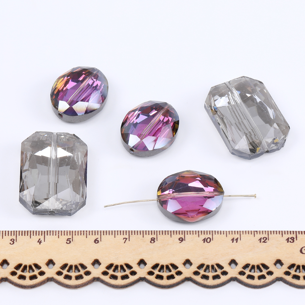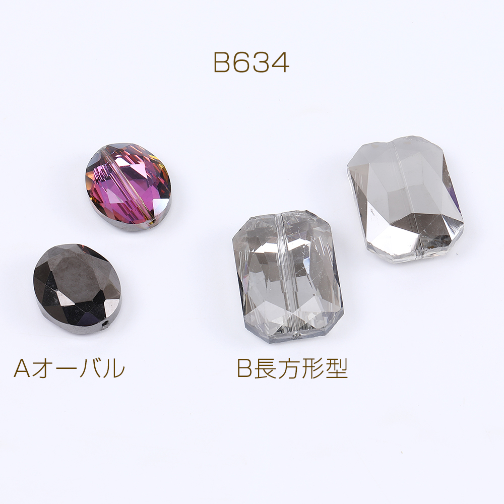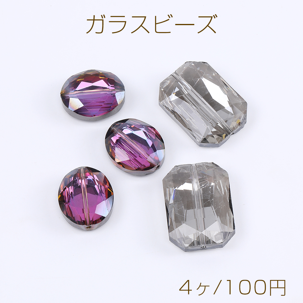ガラスビーズ オーバルカット 長方形型カット メッキ ABカラー(4ヶ)