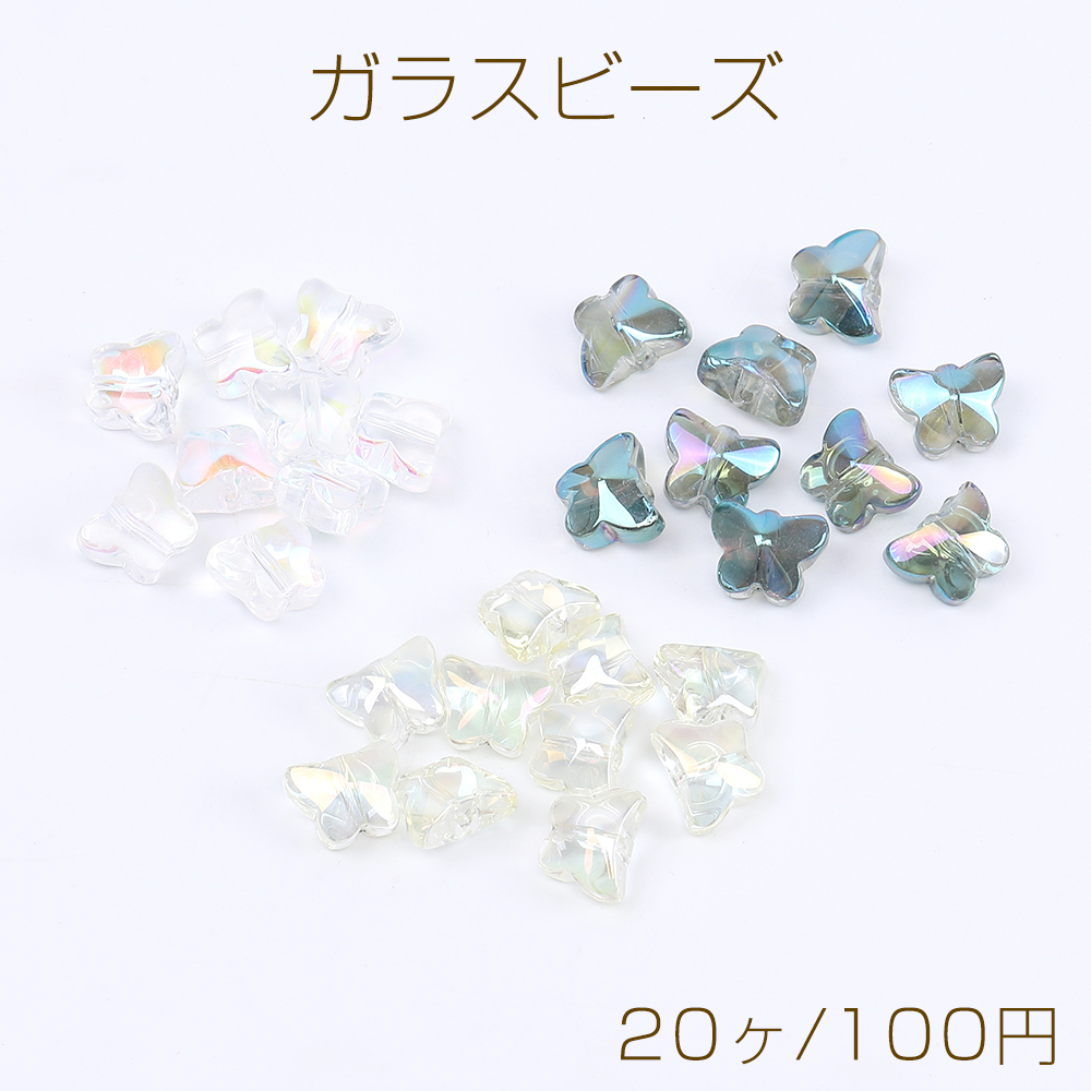 ガラスビーズ 蝶 8×10mm メッキ ABカラー(20ヶ)