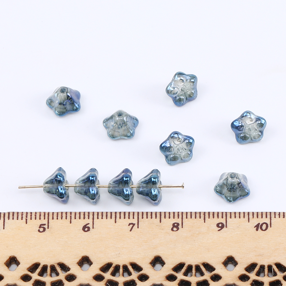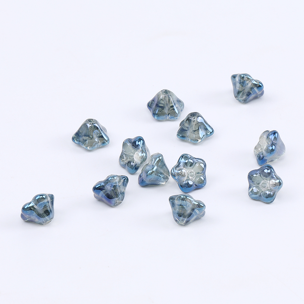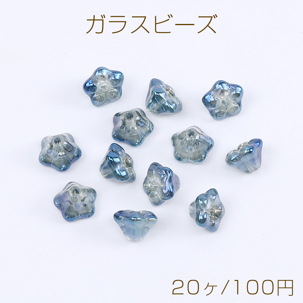 ガラスビーズ フラワー 5×8mm メッキ ブルーABカラー(20ヶ)
