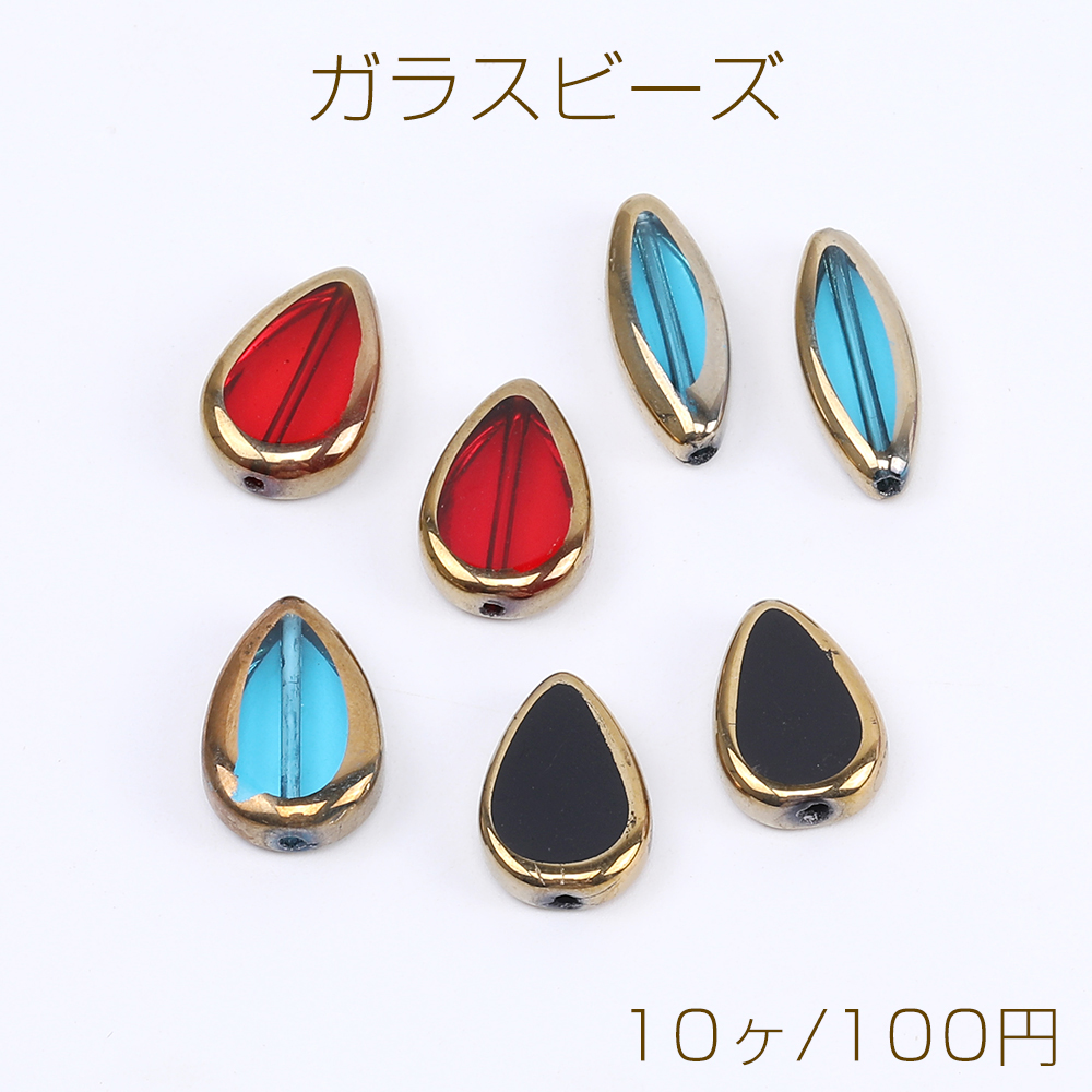 ガラスビーズ しずく型 ロングオーバル メッキ(10ヶ)