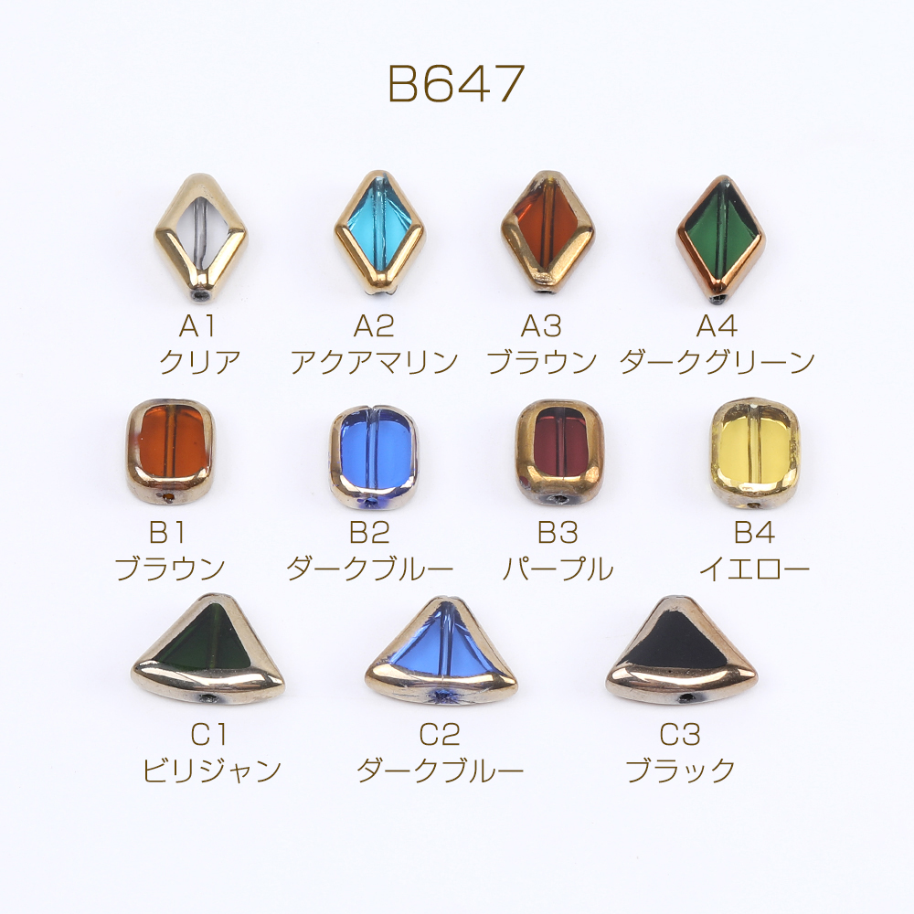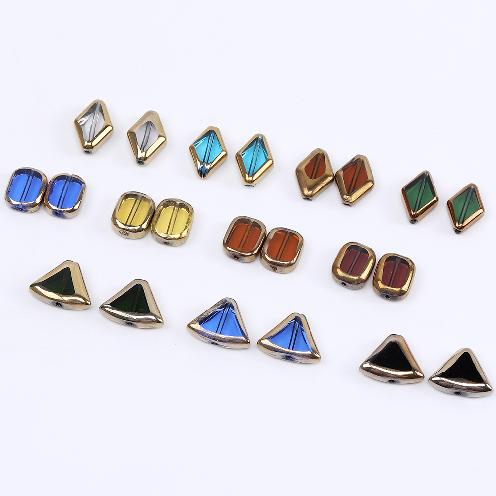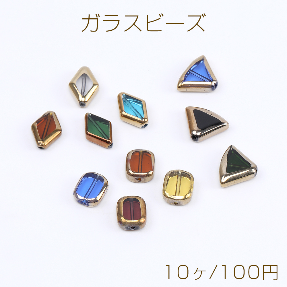ガラスビーズ ひし形 長方形型 三角形 メッキ(10ヶ)