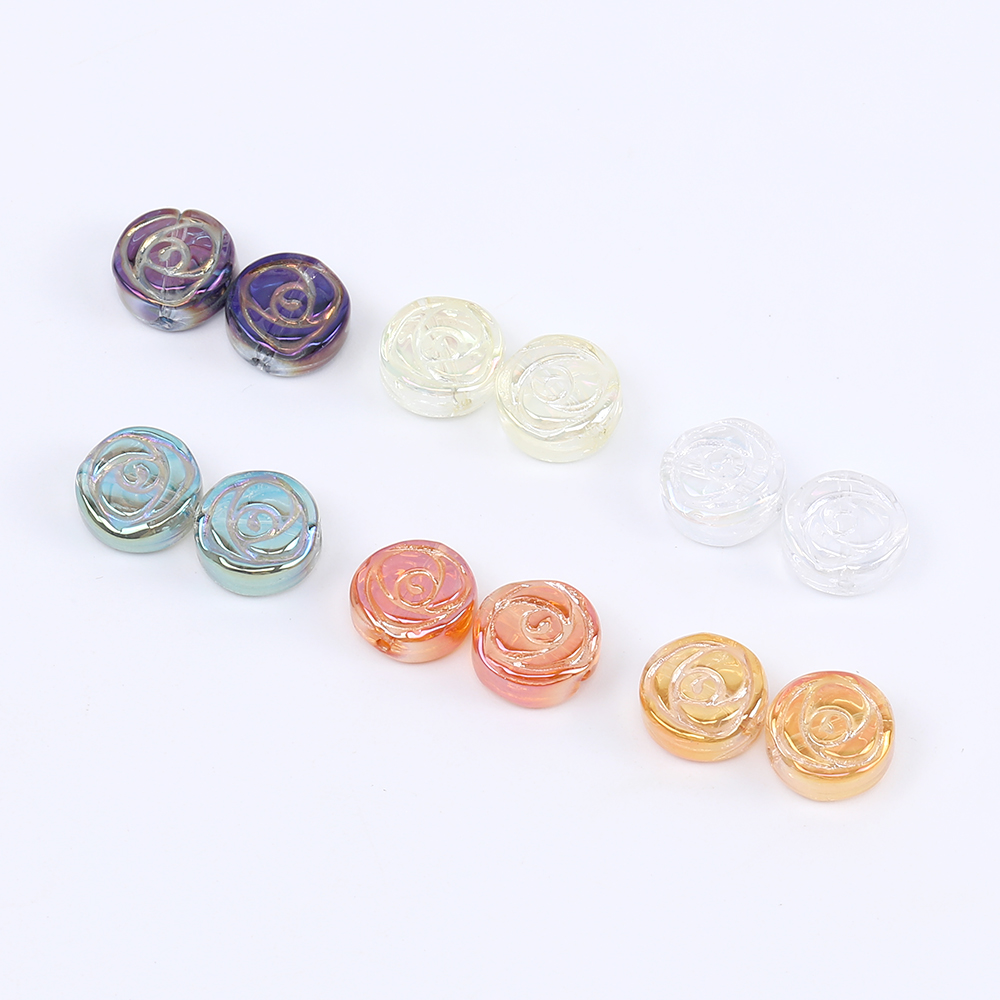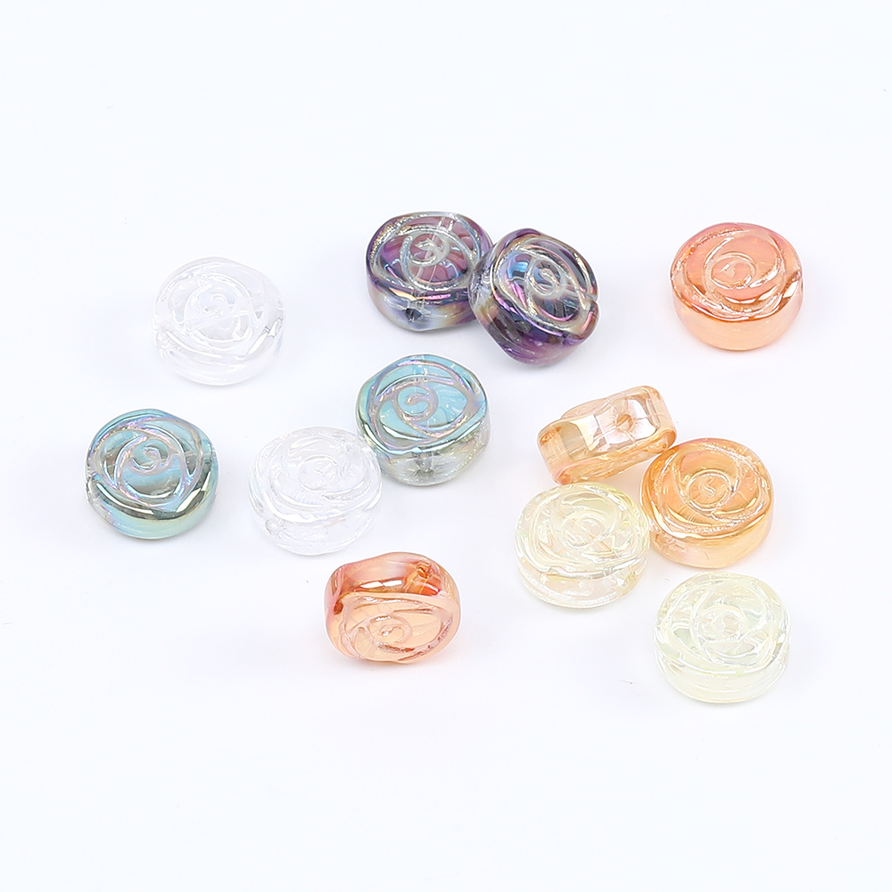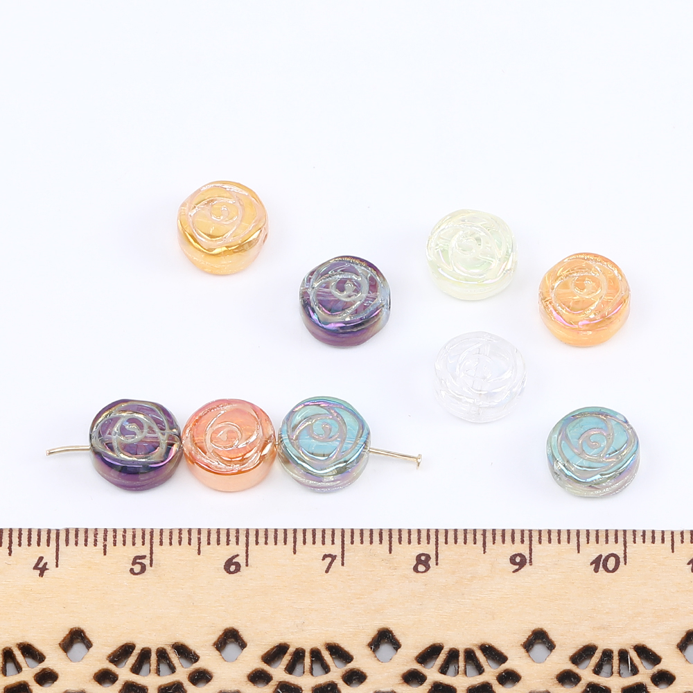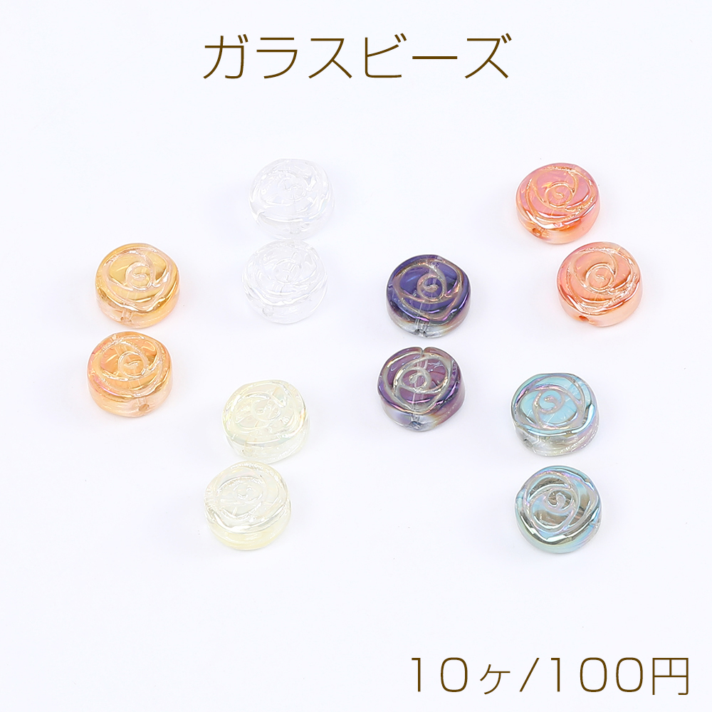ガラスビーズ コイン型 バラの模様 10mm メッキ ABカラー(10ヶ)