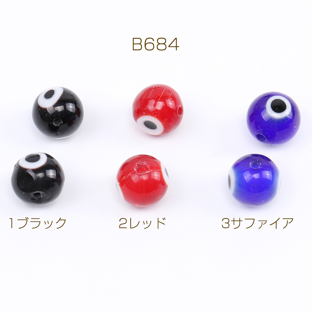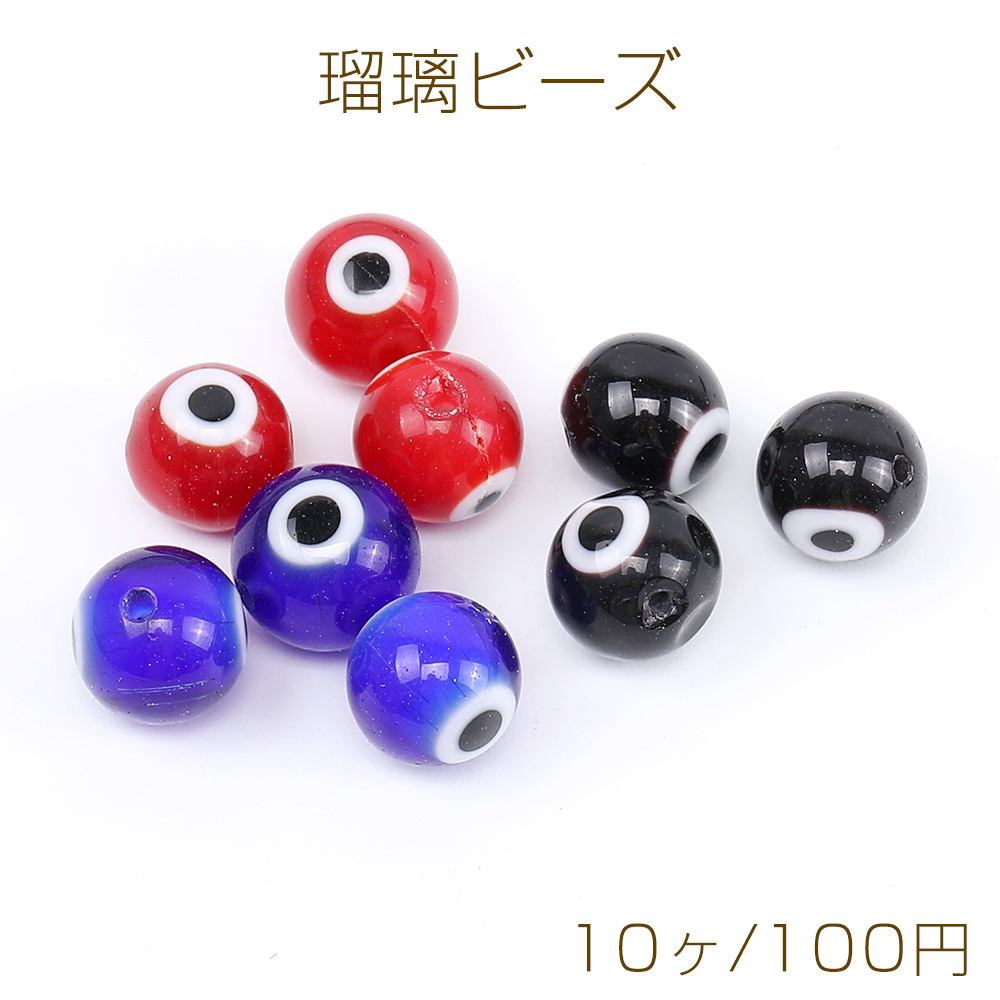瑠璃ビーズ 丸玉 10mm 目型の模様(10ヶ)