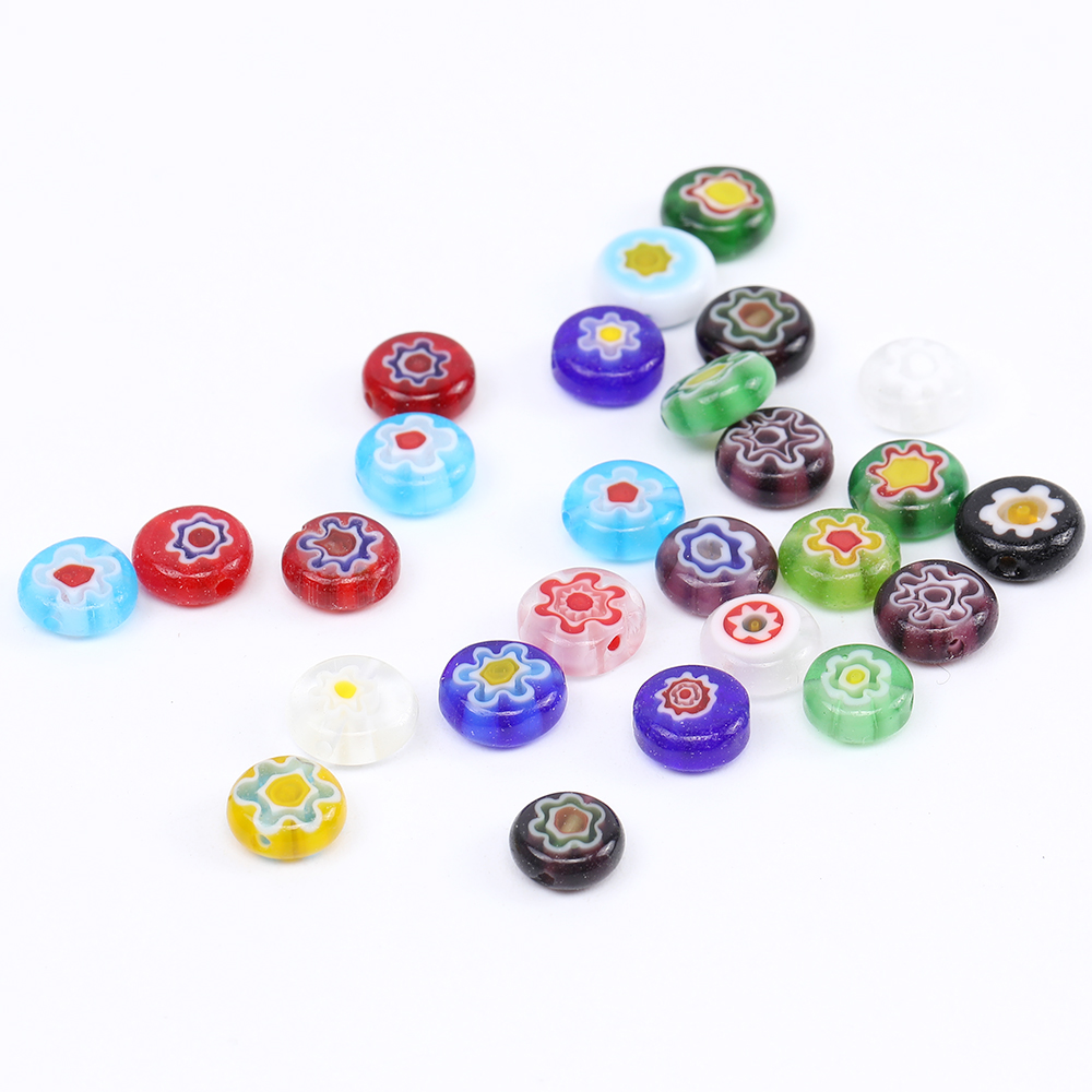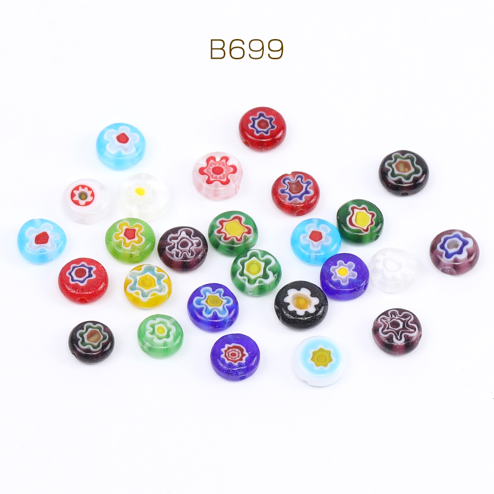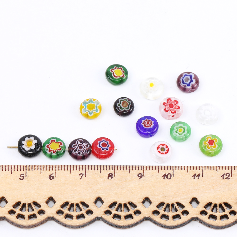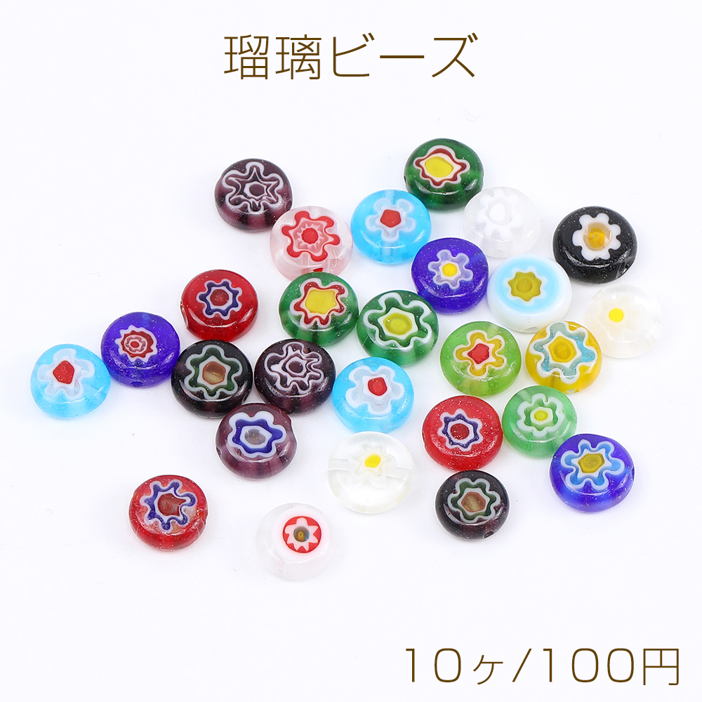 瑠璃ビーズ コイン型 8mm フラワー柄 ミックスカラー(15ヶ)