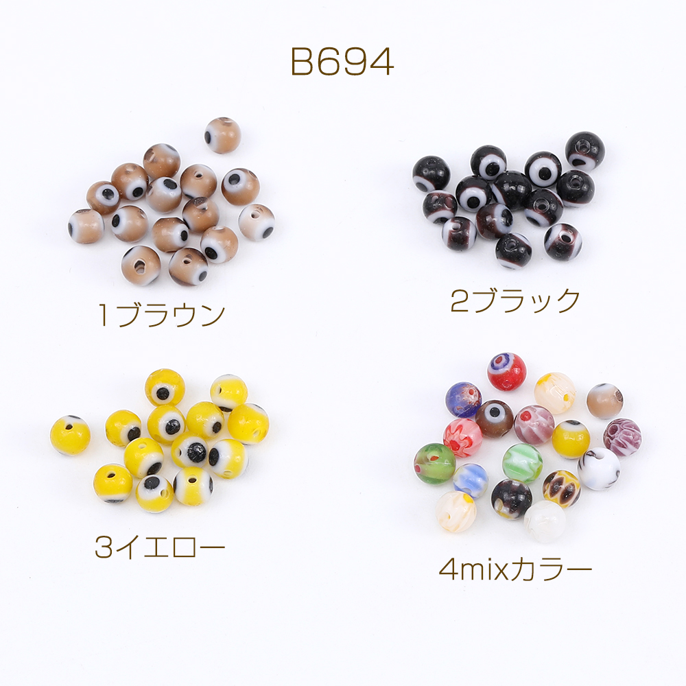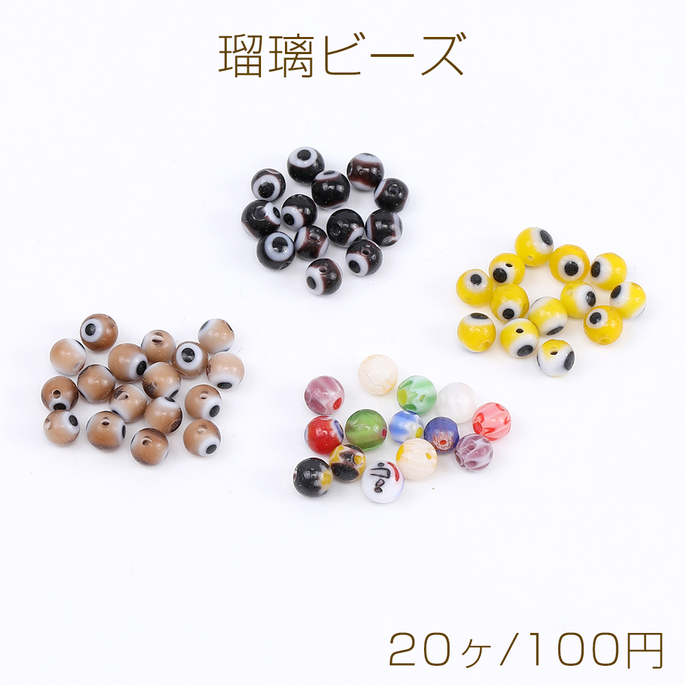 瑠璃ビーズ 丸玉 4mm 目型の模様(20ヶ)