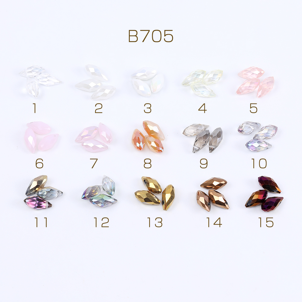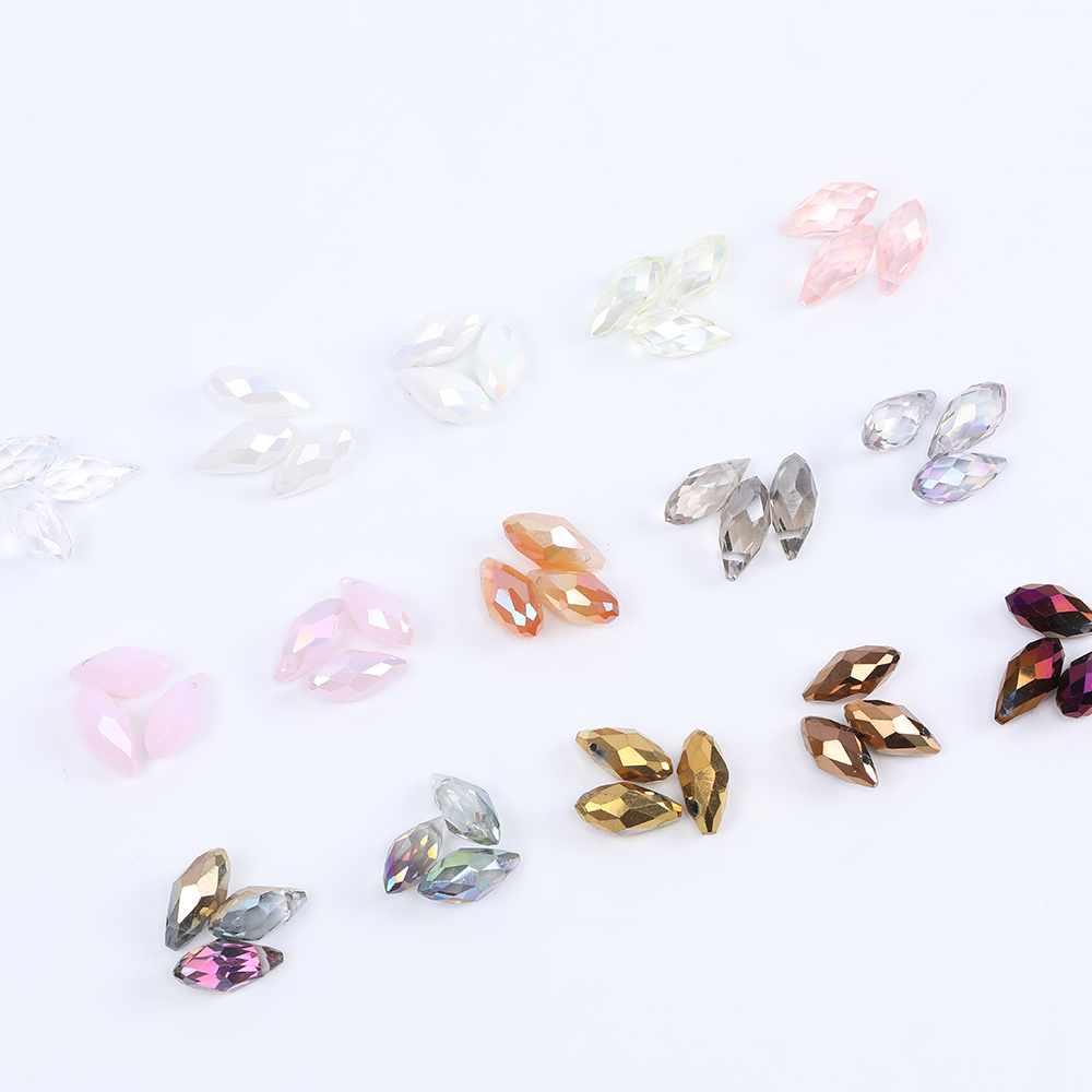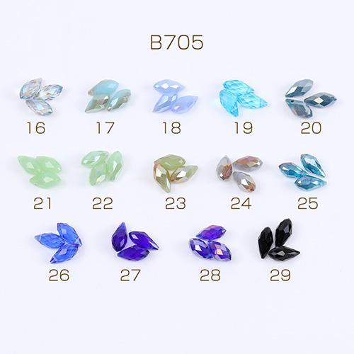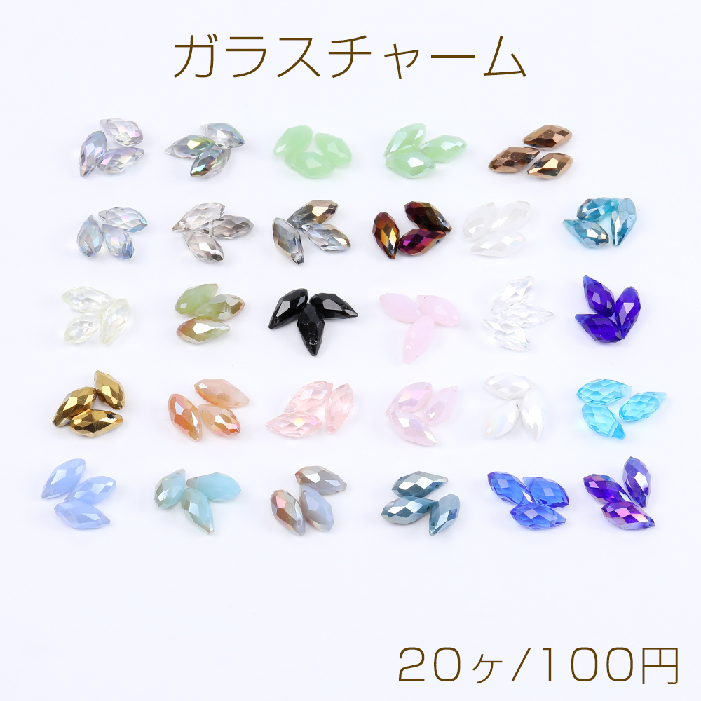ガラスチャーム しずく型カット 横穴 6×12mm メッキ