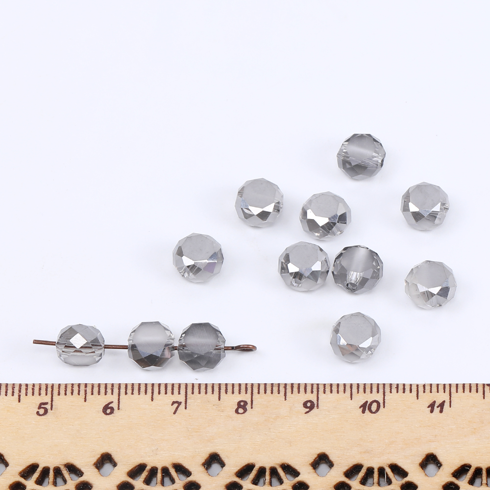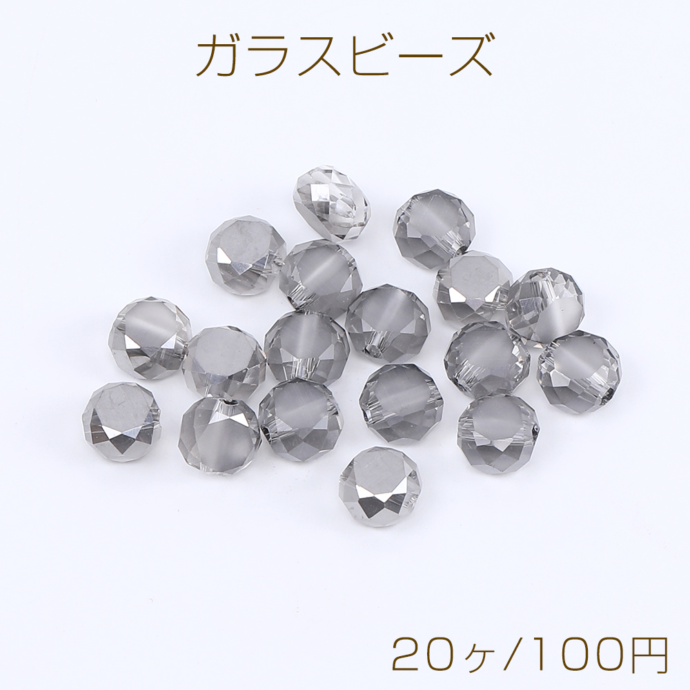 ガラスビーズ フロスト加工 コインカット 8mm メッキ グレー(20ヶ)