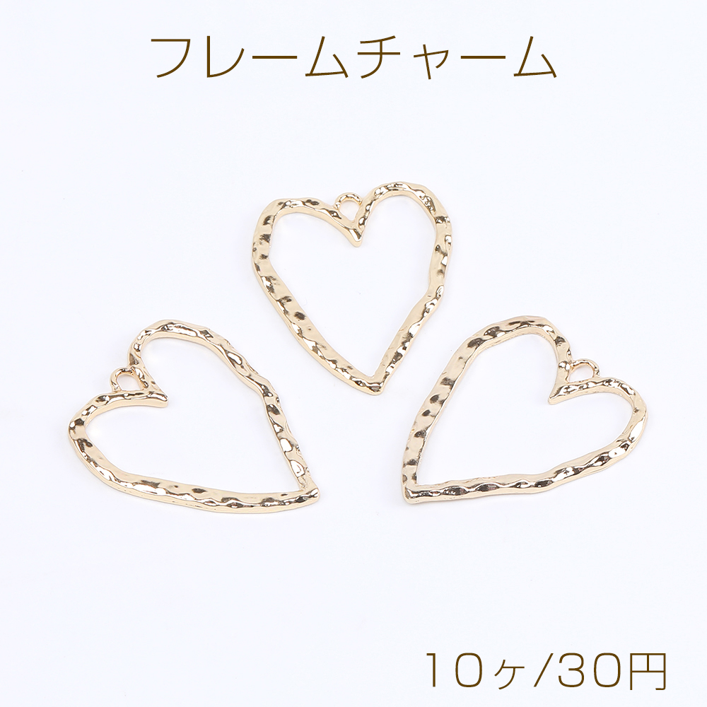 【B級品】レジンフレームチャーム ハート型 カン付き 28×36mm ゴールド(10ヶ)