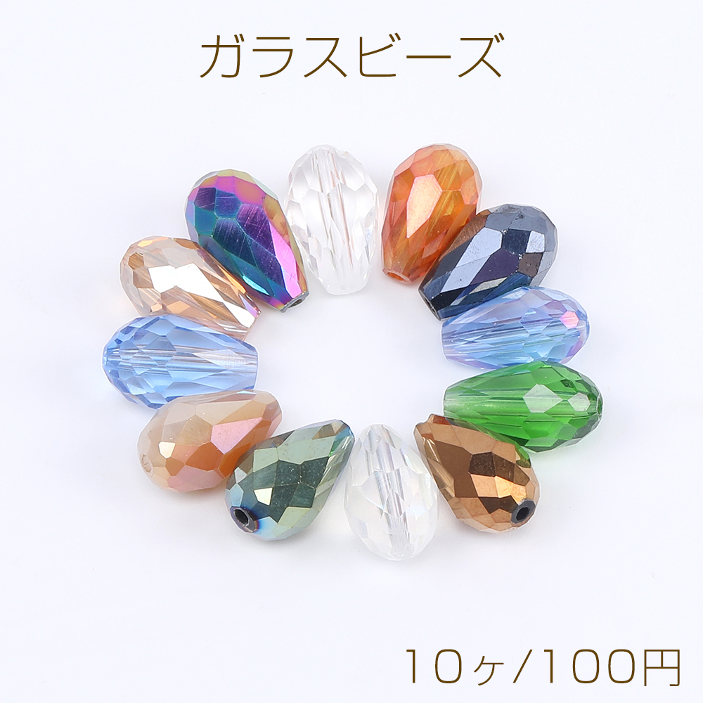 ガラスビーズ しずく型カット 10×15mm メッキ(10ヶ)
