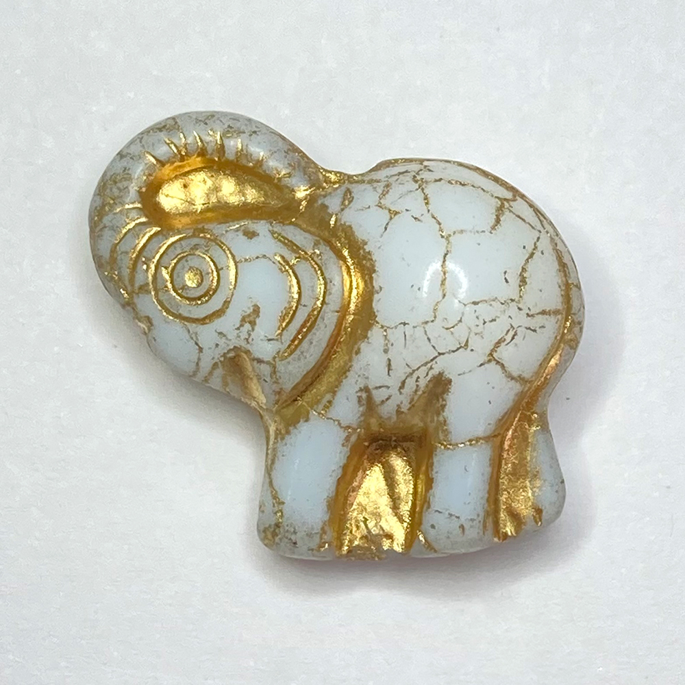 チェコビーズ 象 ホワイト/ゴールド 21x20mm (4ヶ)