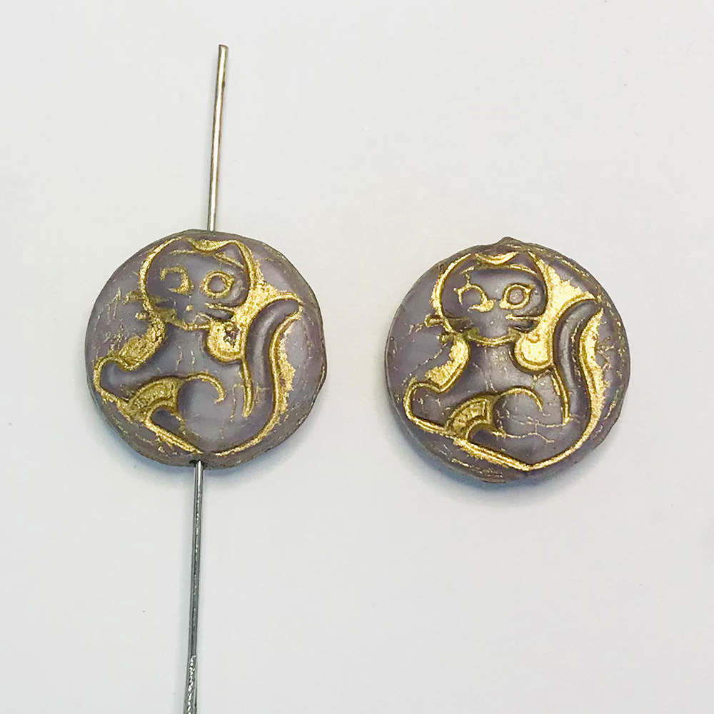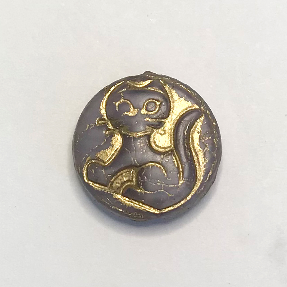 チェコビーズ 猫 マットグレー/ゴールド 14mm (4ヶ)