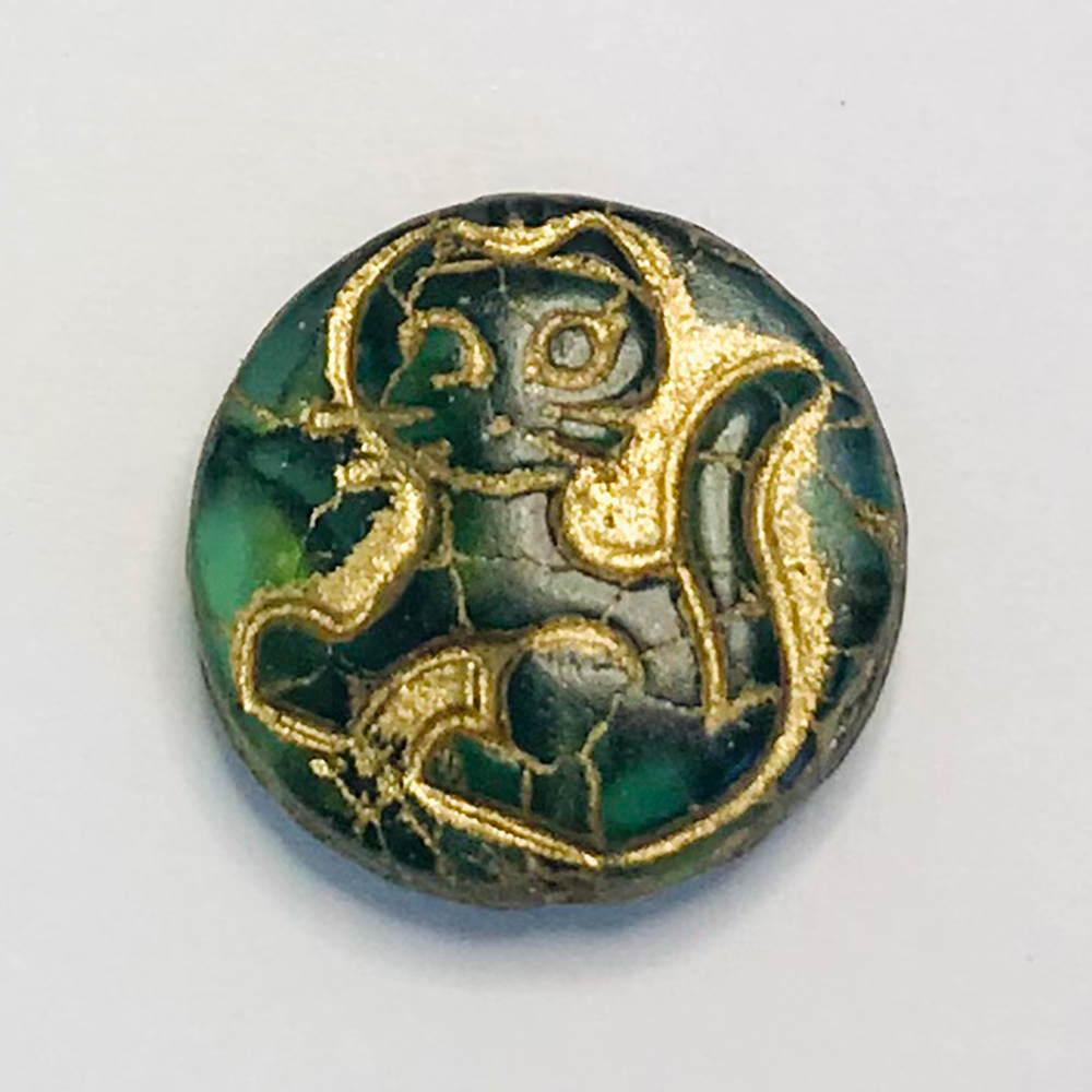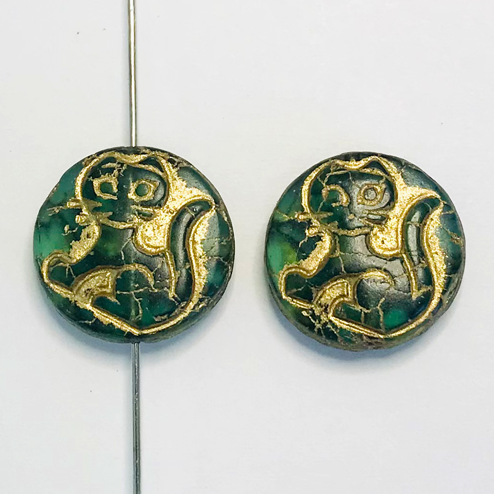 チェコビーズ 猫 マットオリーブ 14mm(4ヶ)