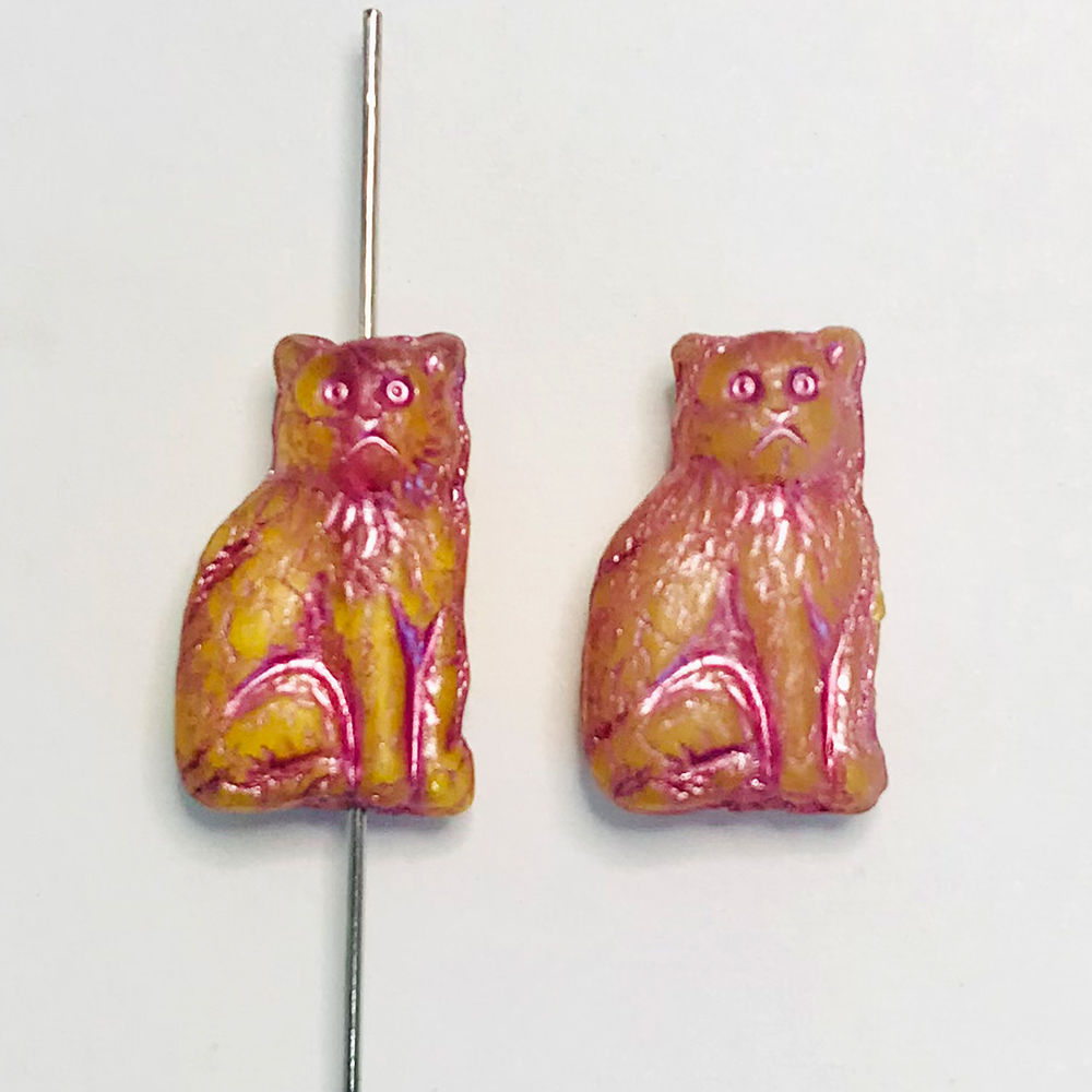 チェコビーズ 猫 マットオレンジ 15x9mm (4ヶ)