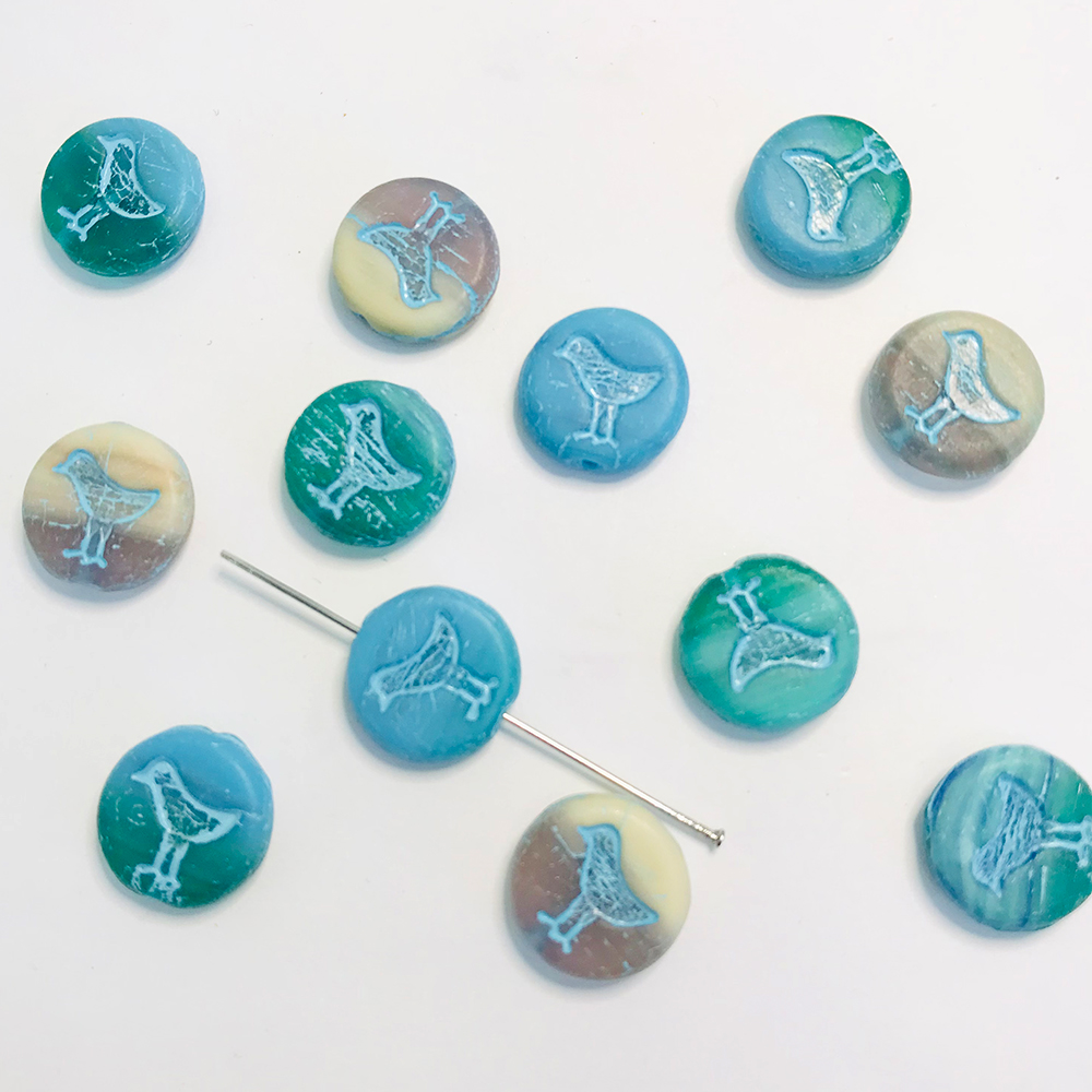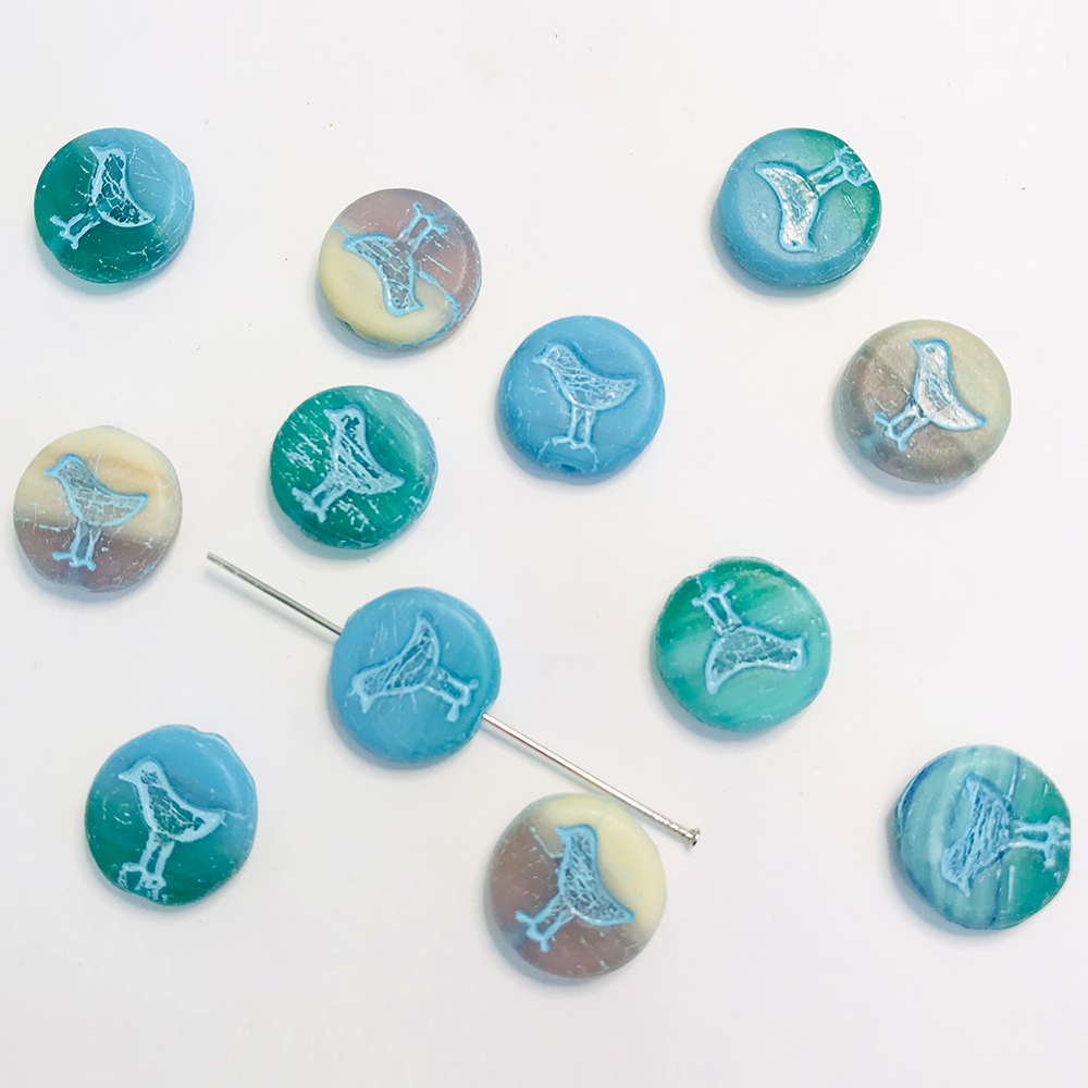 チェコビーズ 鳥 マットブルー/シルバー ミックスカラー 12mm (4ヶ)