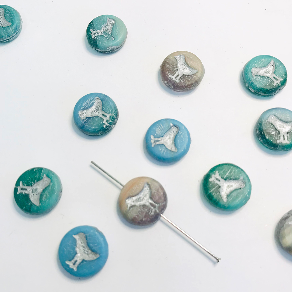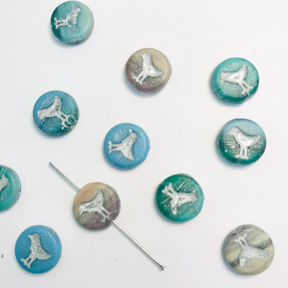 チェコビーズ 鳥 マットブルー/シルバー ミックスカラー 12mm (4ヶ)