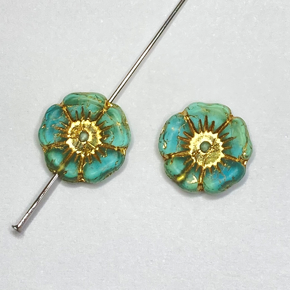 チェコビーズ ハワイアンフラワー ブロンズグリーン 12mm(4ヶ)