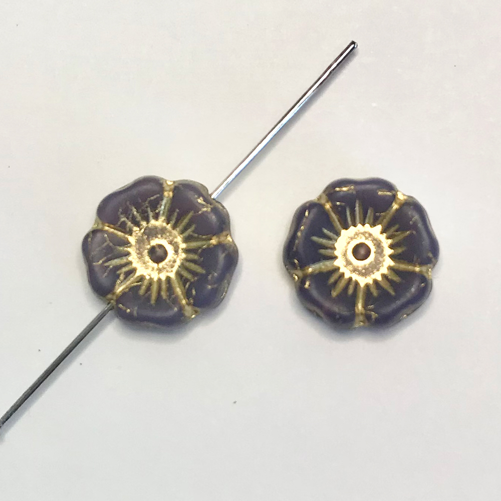 チェコビーズ ハワイアンフラワー ブロンズアメジスト 12mm(4ヶ)