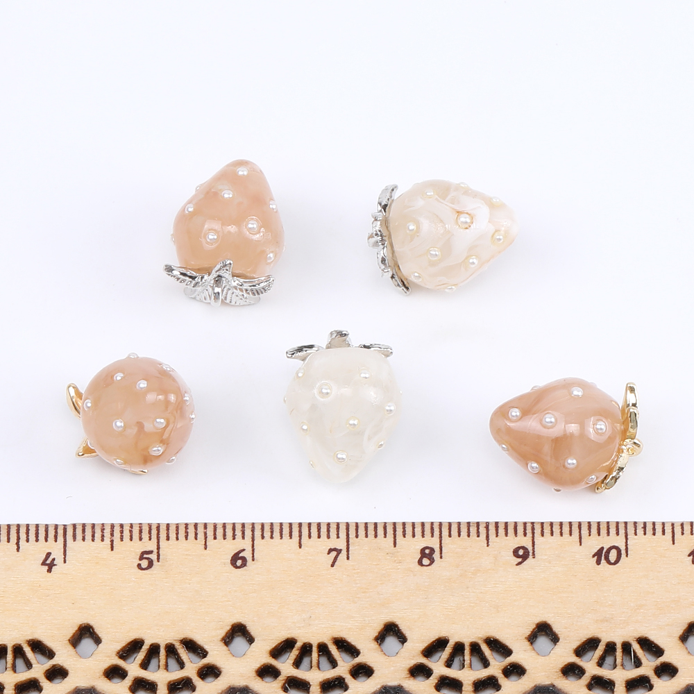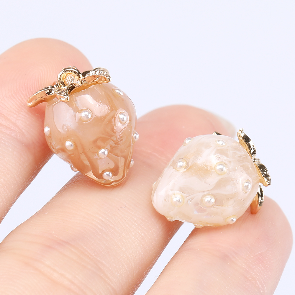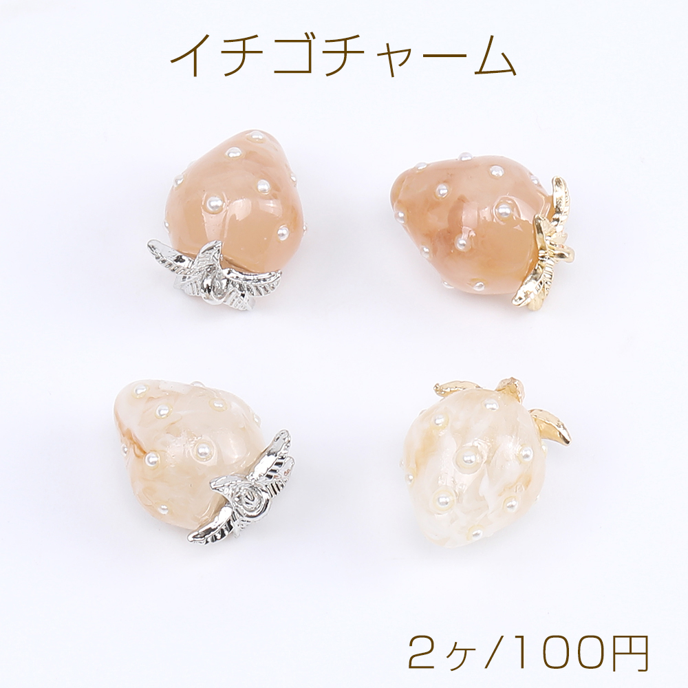いちごチャーム 樹脂製イチゴチャーム かわいいフルーツチャーム 苺 パール付き 12×16mm(2ヶ)