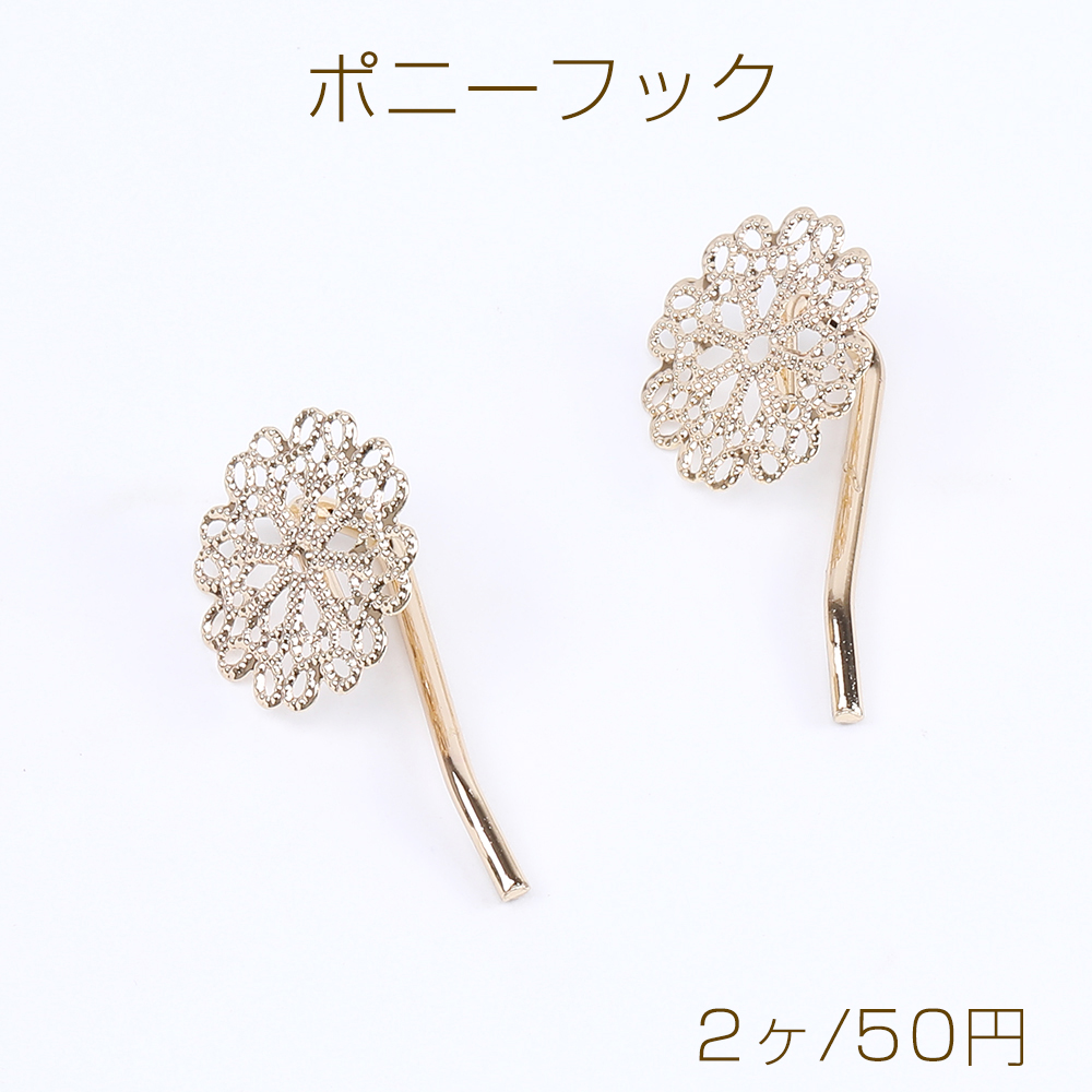 ポニーフック ヘアアクセサリー 透かしパーツ付き 20mm ゴールド(2ヶ)