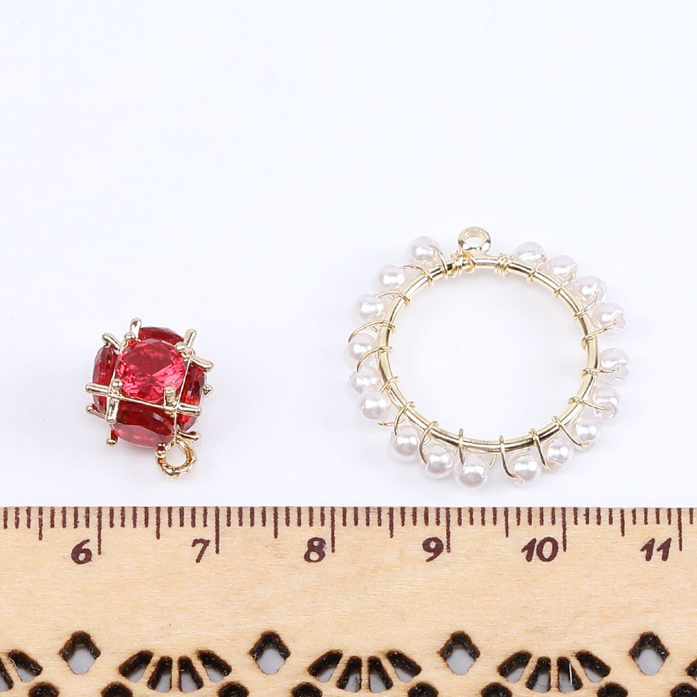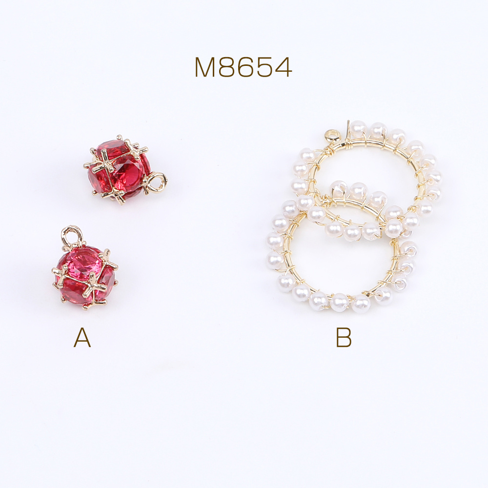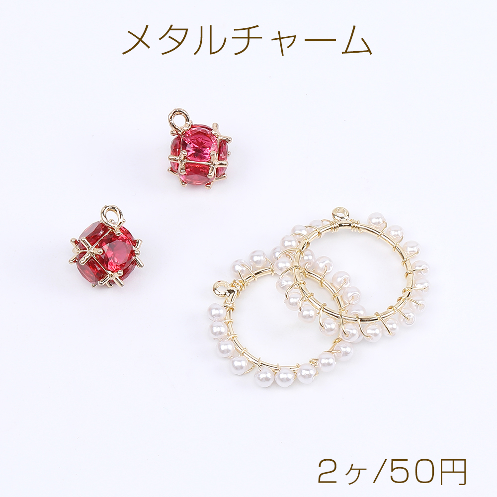 メタルチャーム ガラスストーンチャーム パールチャーム ゴールド(2ヶ)