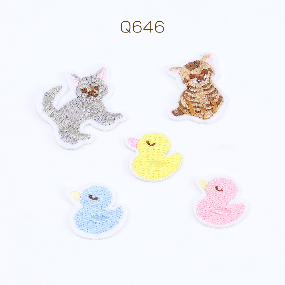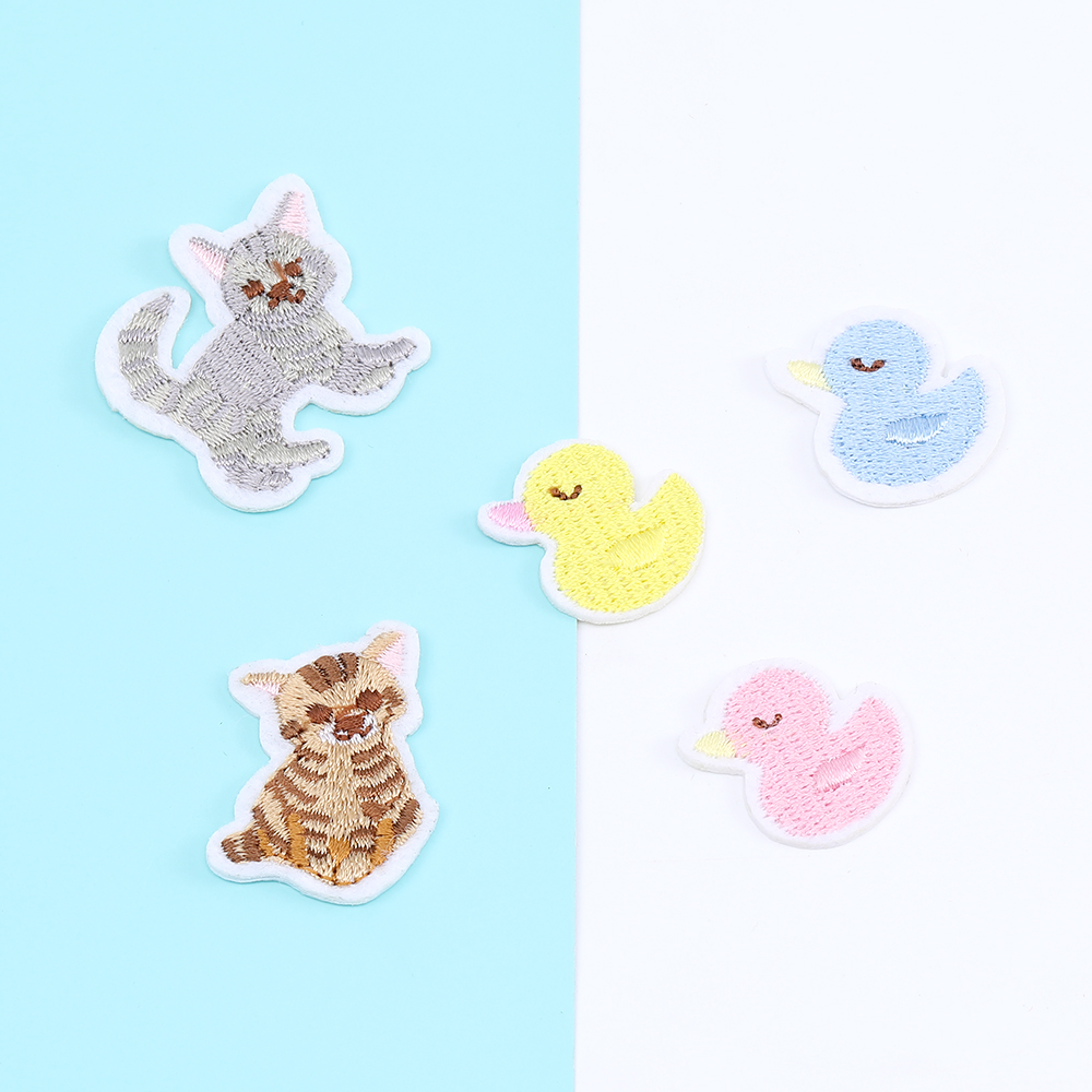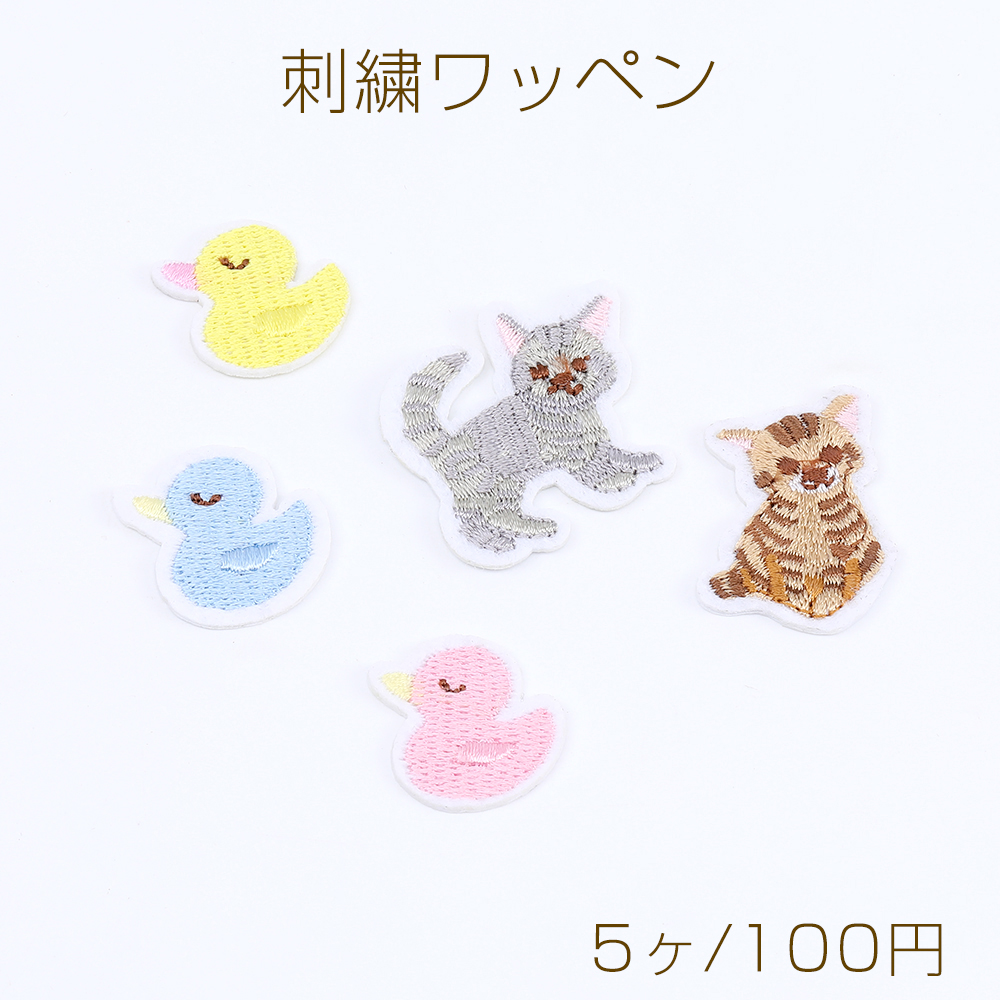 刺繍ワッペン アヒル&猫 全5種 各1個(5ヶ)